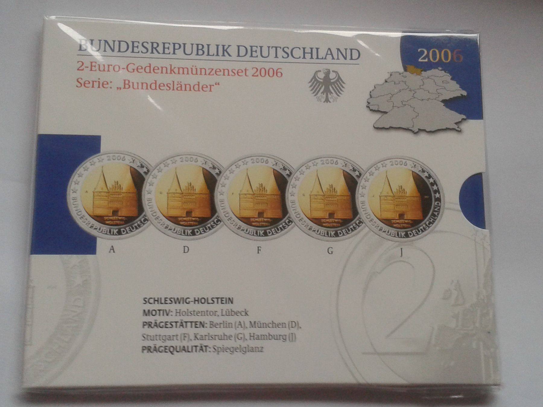 Original 5 x 2 euro 2006 PP ADFGJ 2006 Holstentor Schleswig Holstein noch original verschweisst bei Fragen: