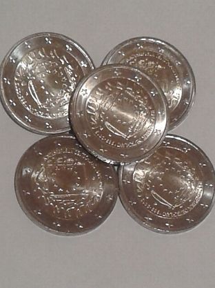 Original 5 x 2 euro ADFGJ BRD Deutschland 2015 30 Jahre EU Flagge im Beutel