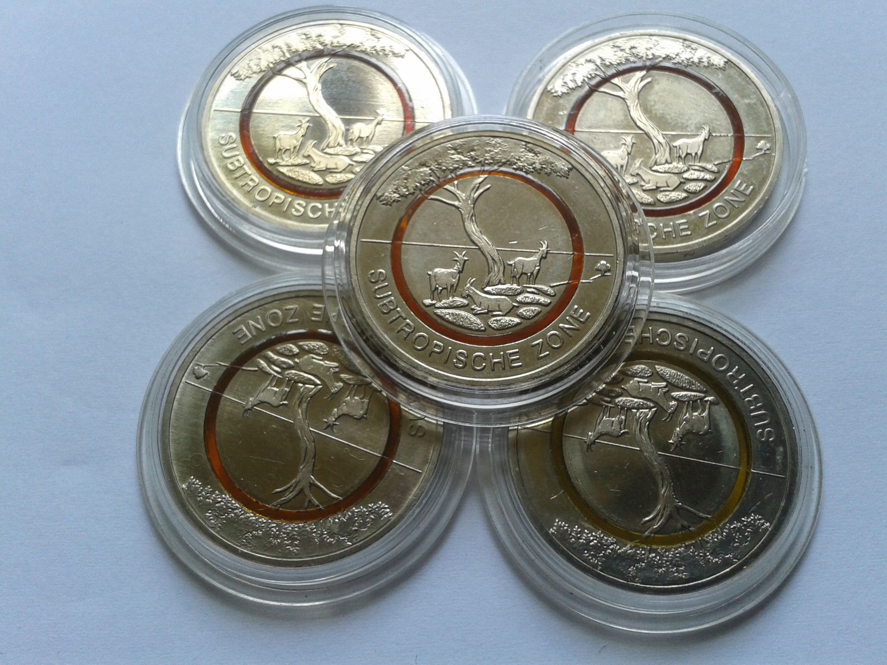 Original 5 x 5 euro 2018 ADFGJ im Set Subtropische Zone Polymerrringin in Münzkapseln