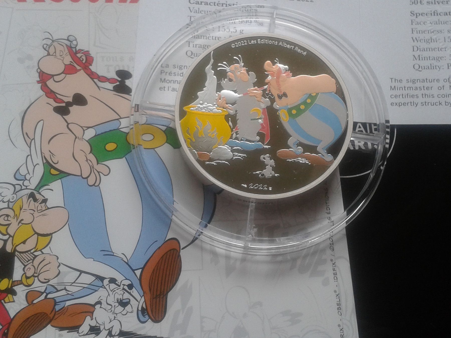 Original 50 euro 2022 PP Frankreich Asterix Obelix Miraculix 5 Unzen Silber PP 500 Ex