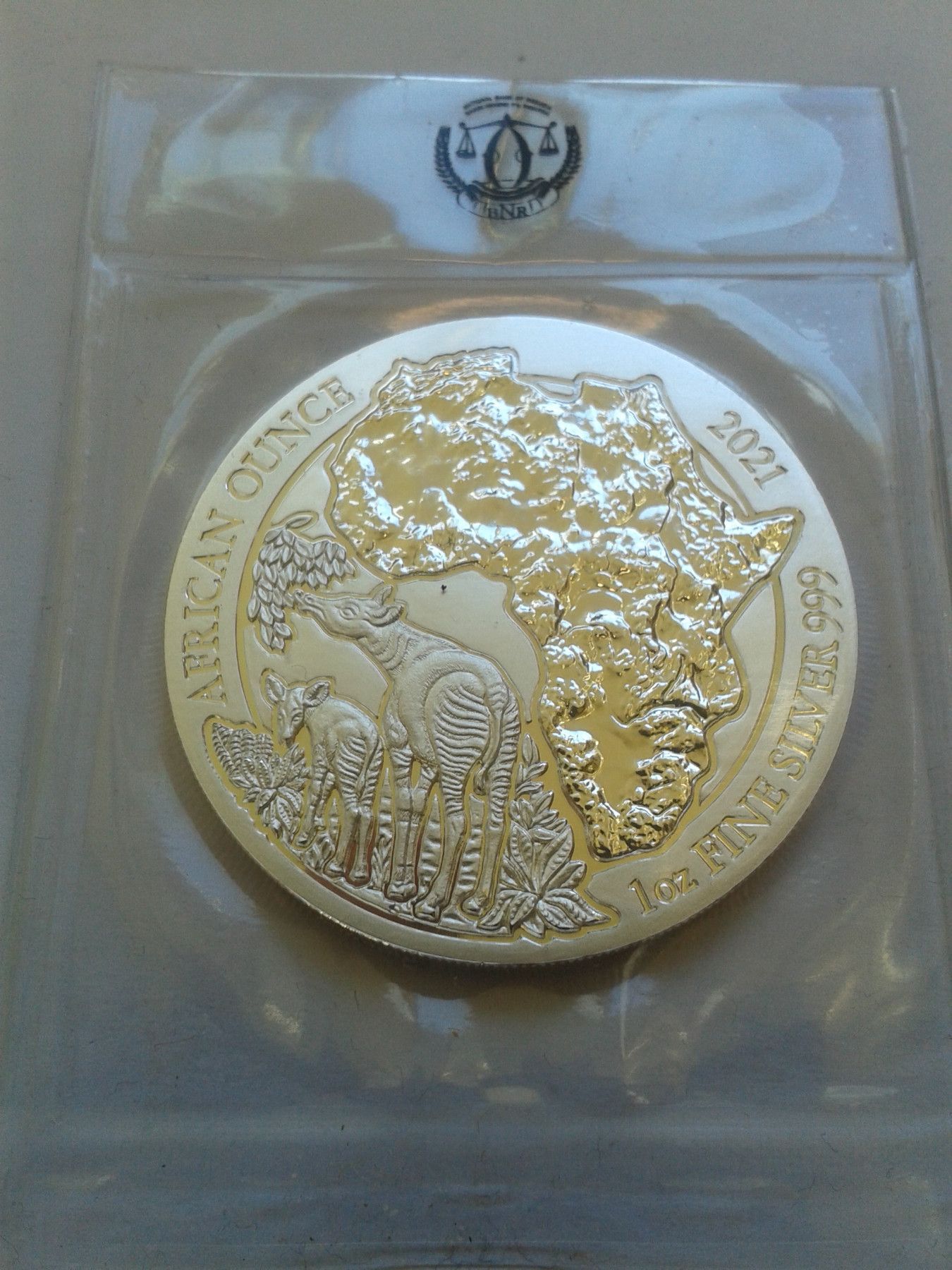 Original 50 Francs 2021 Ruanda Okabi Wildtiere 1Unze 999er Silber 50 RWF 2021 Ruanda bei Fragen: