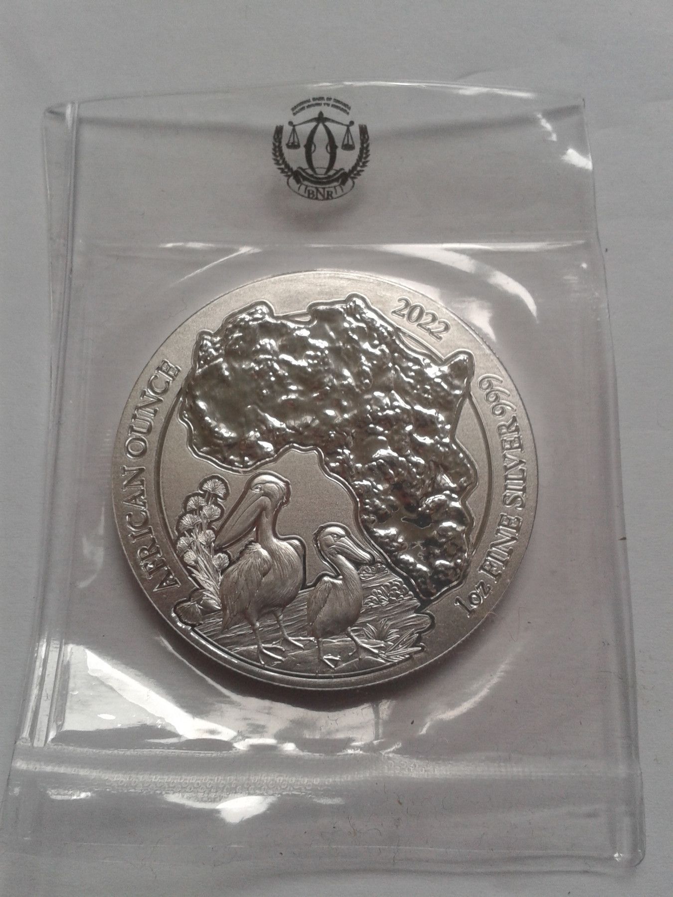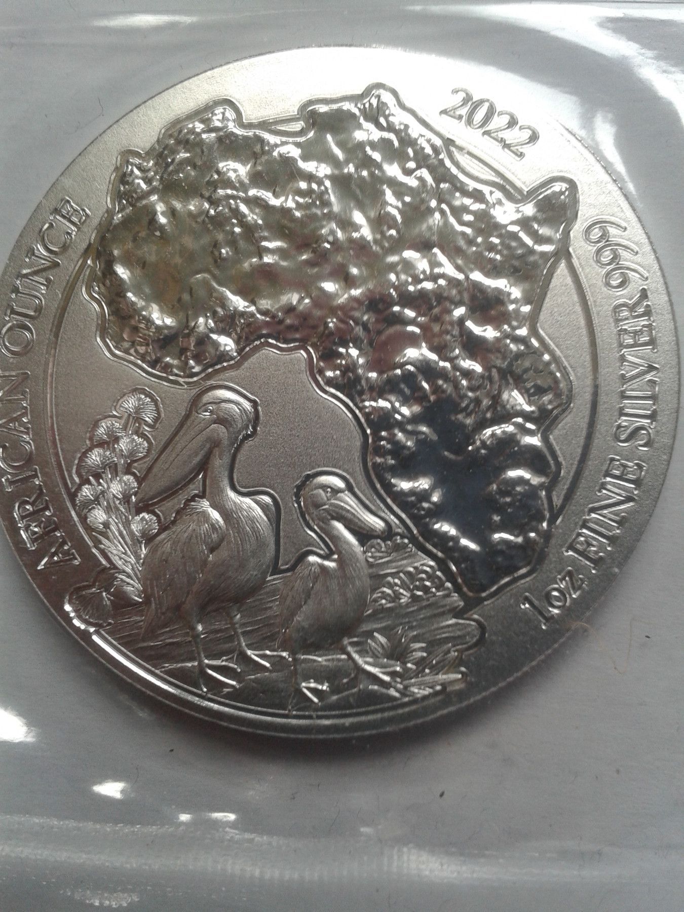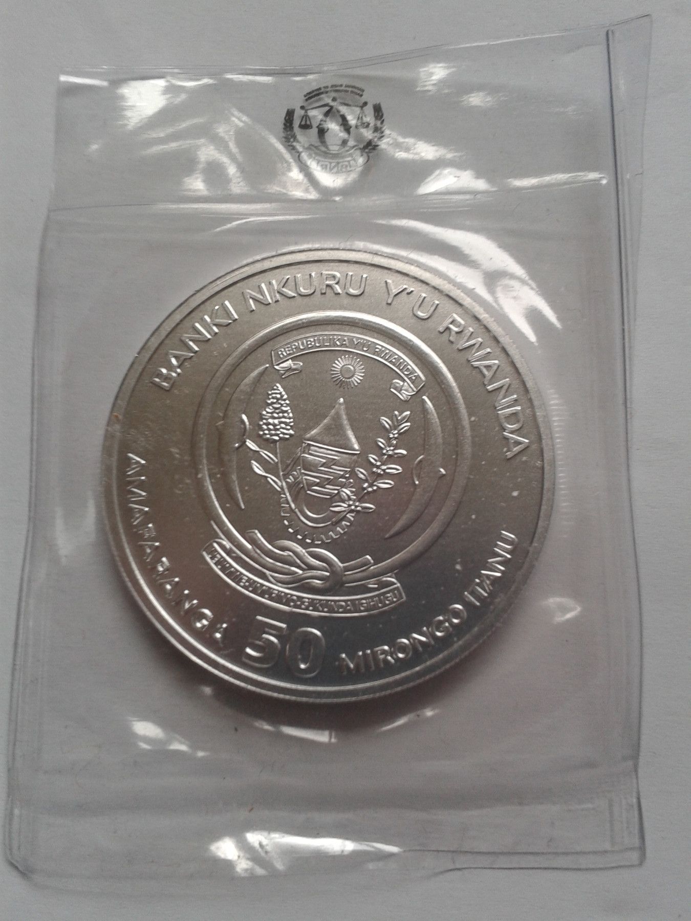 Original 50 RWF 2022 Ruanda Rwanda Pelikan 1 Unze Silber eingeschweisst in Folie