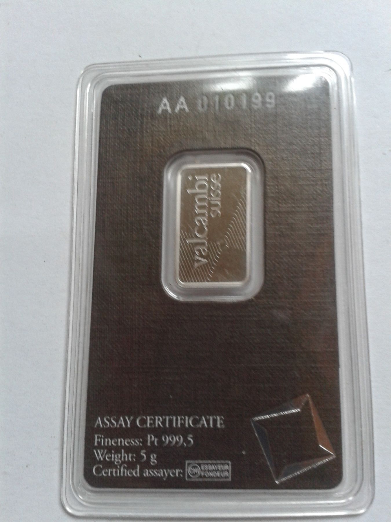 Original 5g Platinbarren Valcambi Schweiz verschweisst