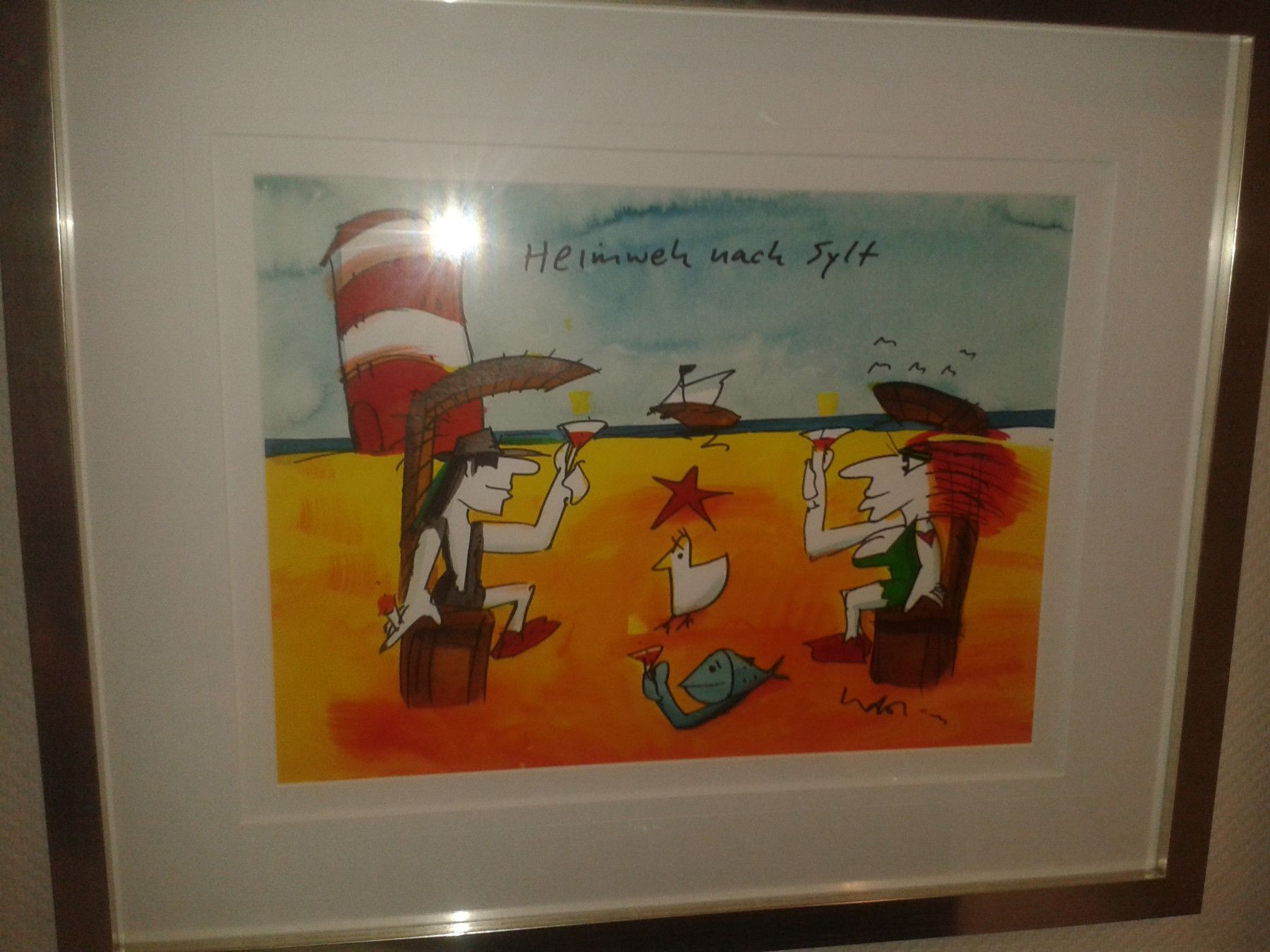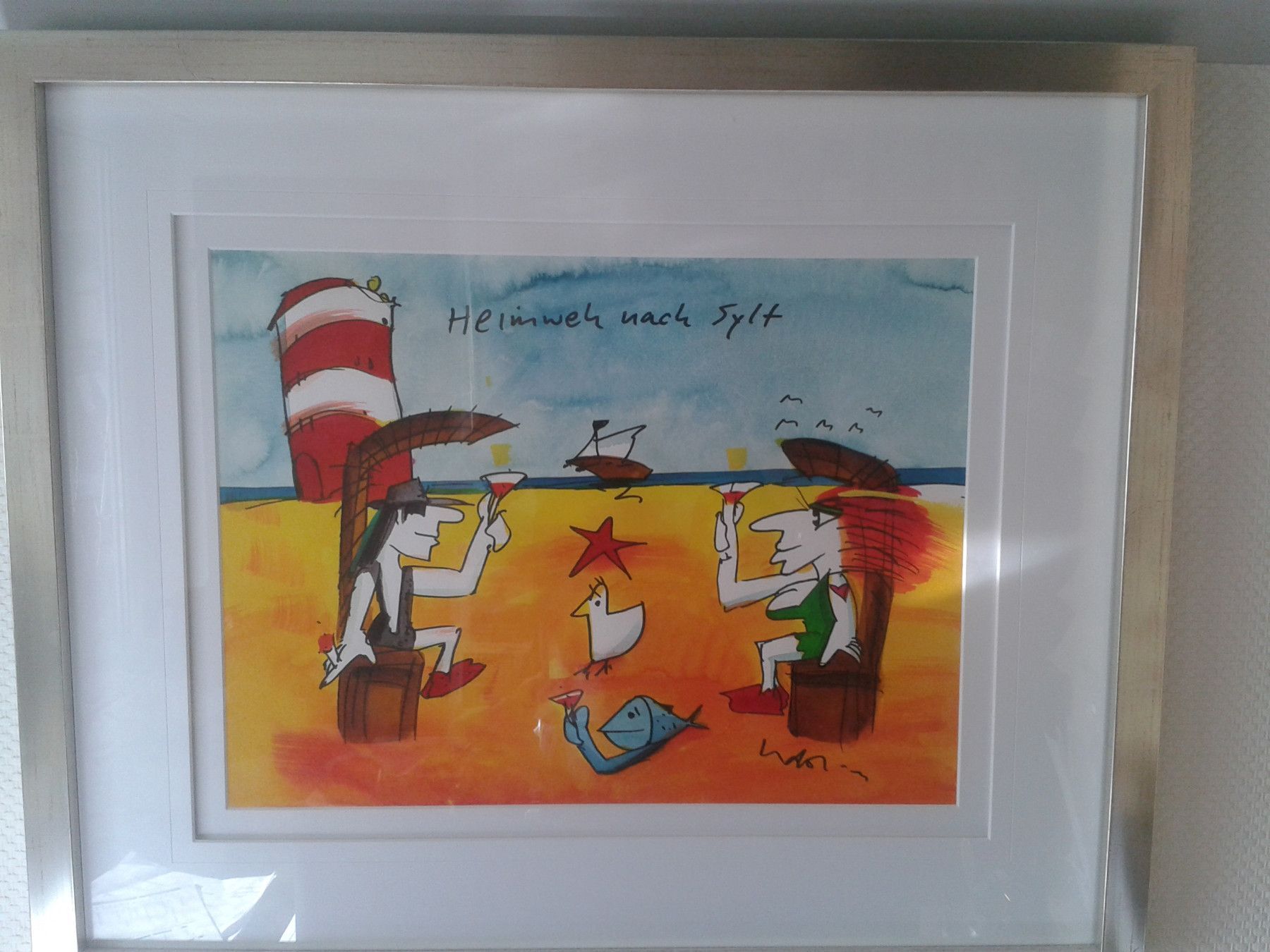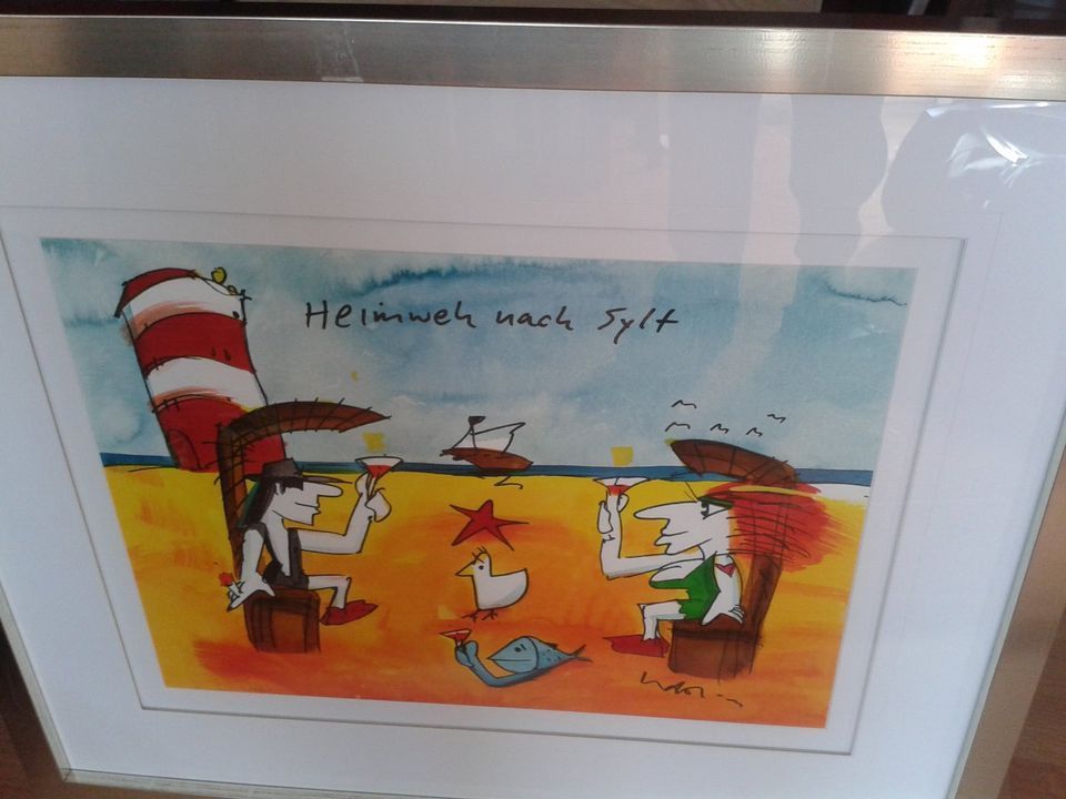 Original Aquarell Udo Lindenberg Heimweh nach Sylt gerahmt ca. 72x60 cm Bild 47x37 cm