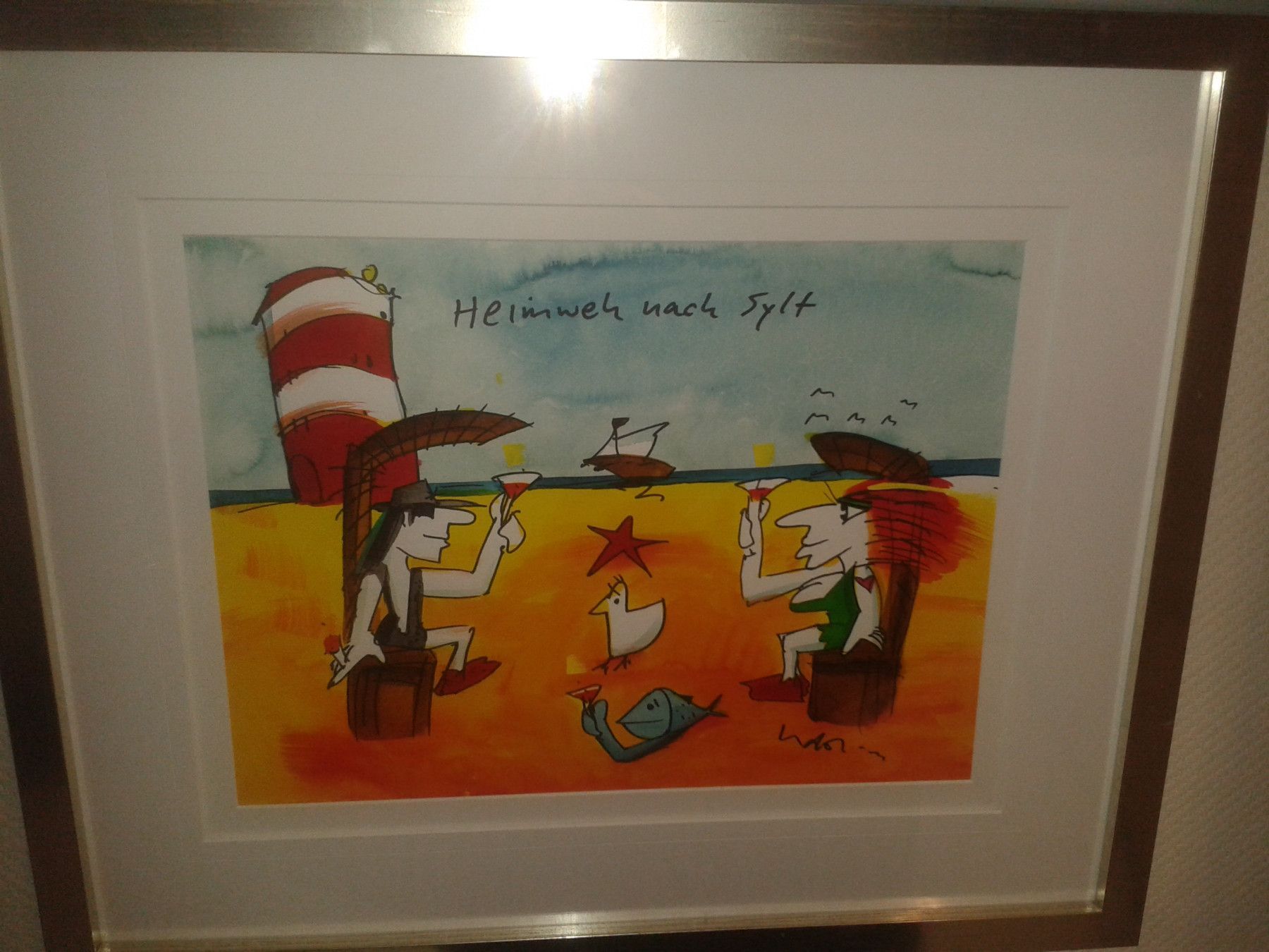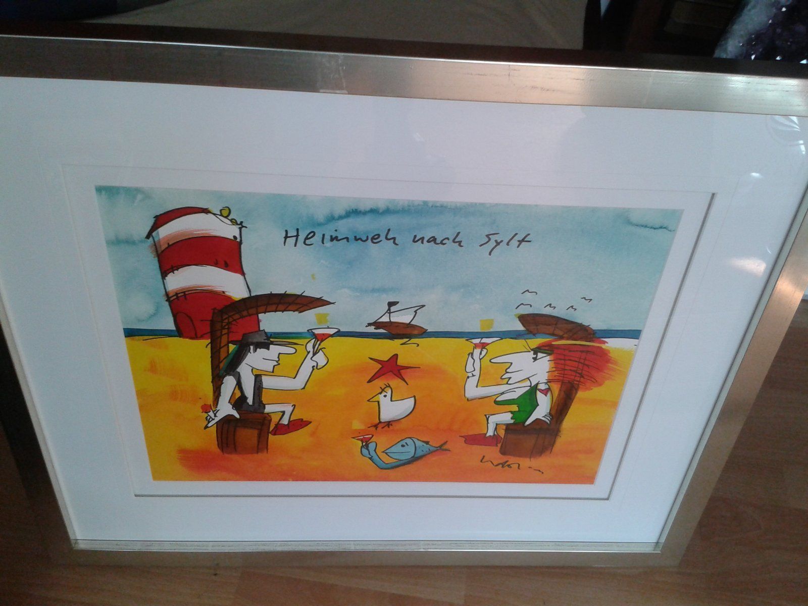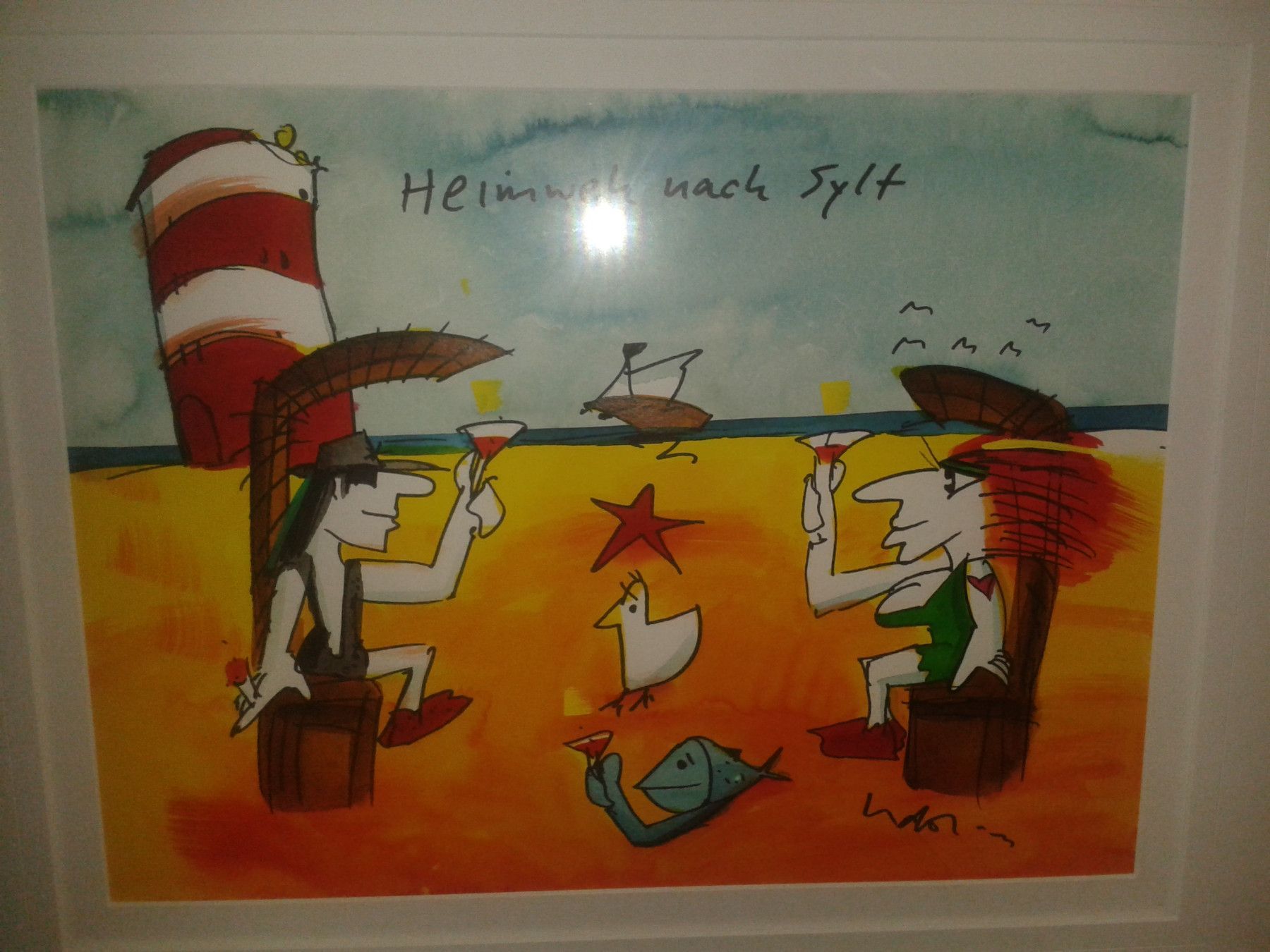 Original Aquarell Udo Lindenberg Heimweh nach Sylt gerahmt ca. 72x60 cm Bild 47x37 cm