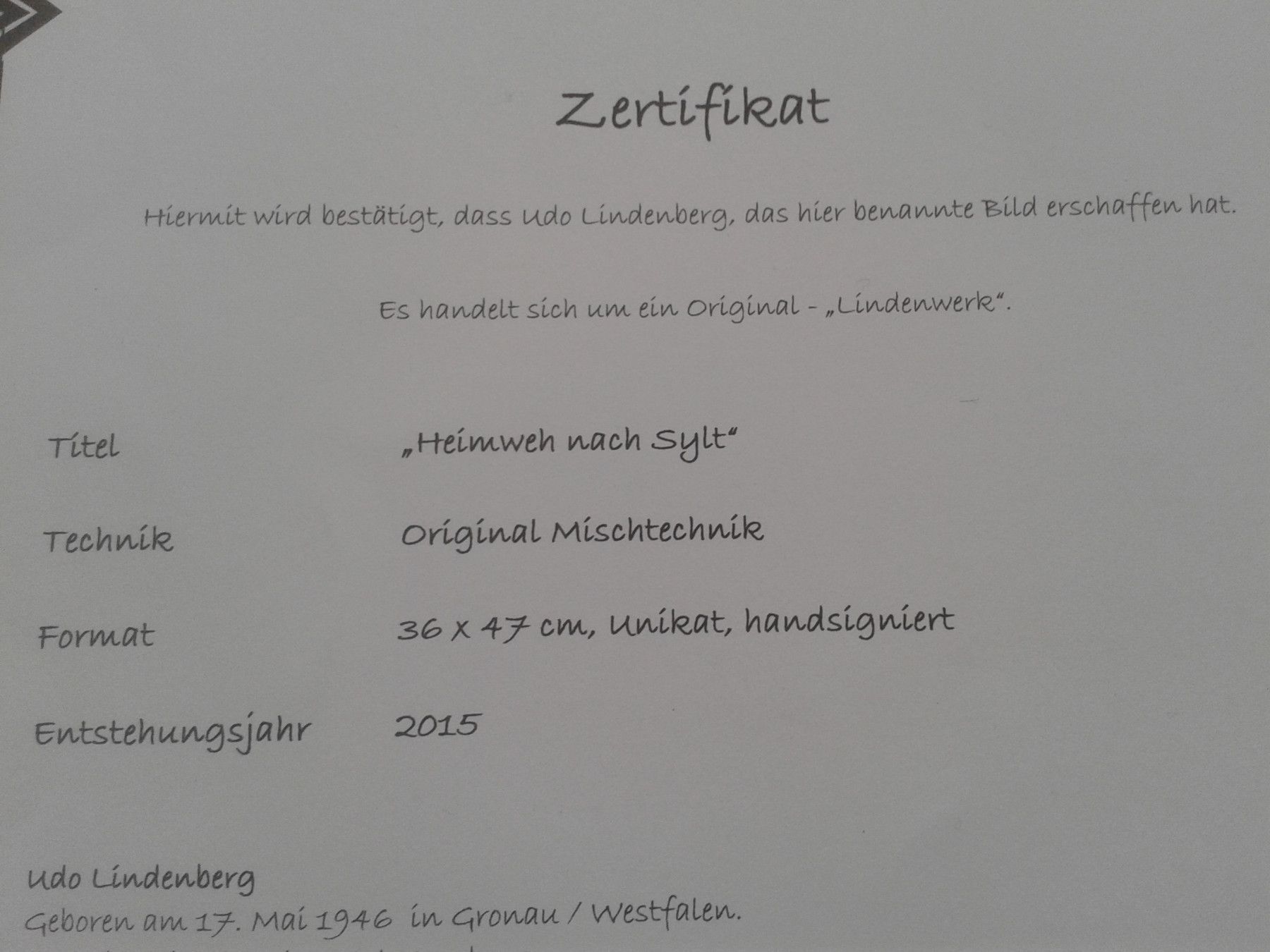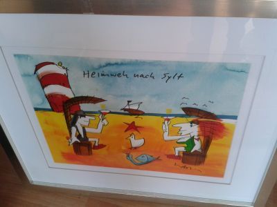 Original Aquarell Udo Lindenberg Heimweh nach Sylt gerahmt ca. 72x60 cm, Bildmass: 47x37 cm. mit Galerie-Echtheutszertifikat Versand nur innerhalb Deutschland Besteuerung gemäss UstG§25a (Differenzbesteuerung)