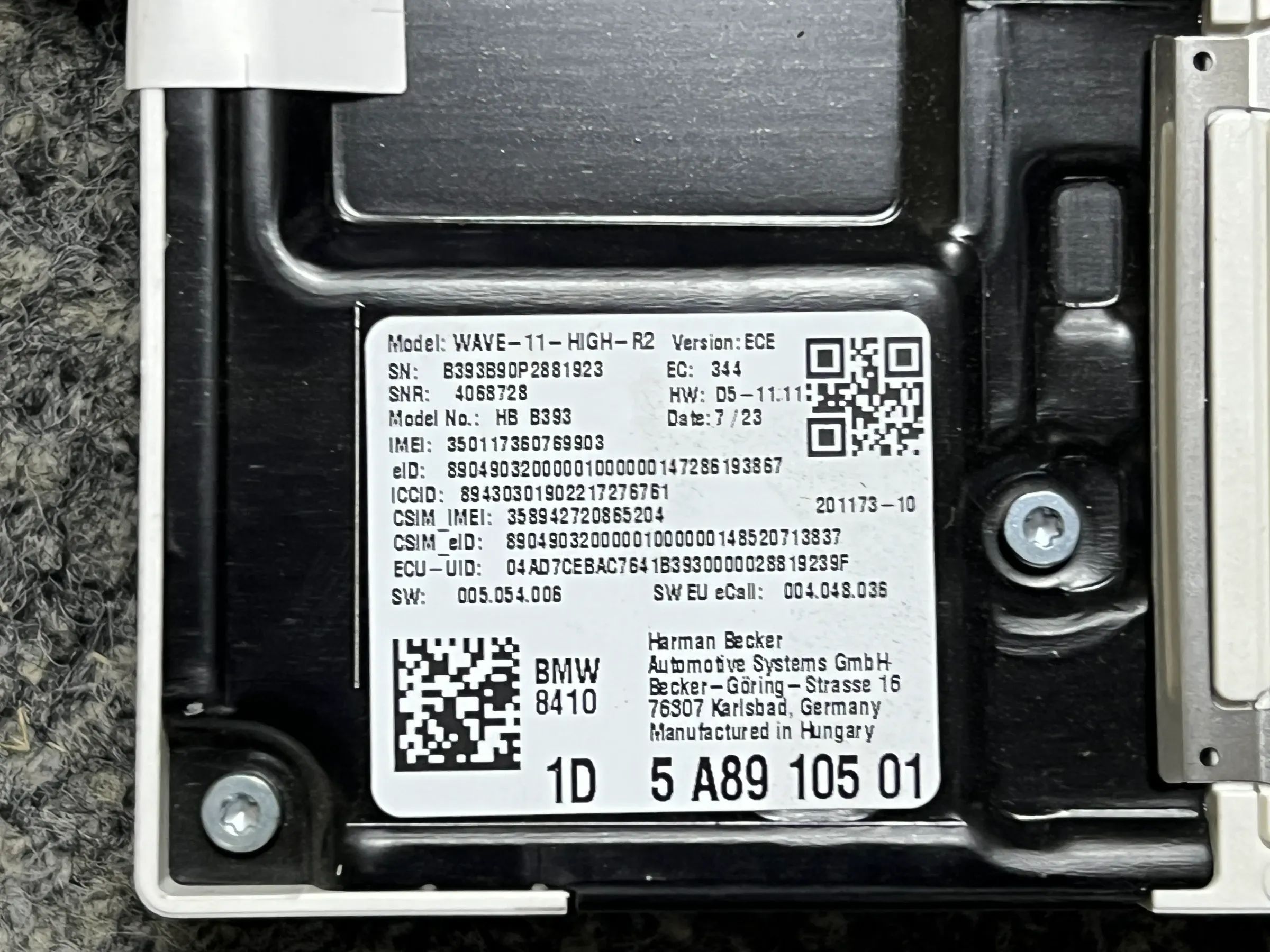 Original BMW Steuergerät Telematics Control Module (TCU) 5A89105 84105A89105 NEU