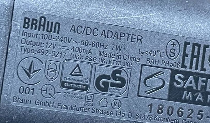 Original Braun 492-5217 Netzteil Ladegerät Ladekabel Rasierer 12V 0.4A 400mA)