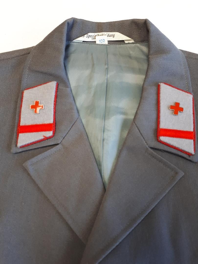 Original DDR DRK Gala Jacke Ausgangsjacke eines Zugführers K 56 * ohne Stempelung Zustand: sehr gut - gebraucht, am linken Ärmel fehlt das DRK Stoffabzeichen * Empfehlung dazu: Je nach persönlichem Anspruch besteht die Möglichkeit, die Uniformjacke in einer Fachreinigung chemisch reinigen zu lassen. Farbe: grau, Farbe kann auf den Fotos je nach Lichteinfall variieren Größe: 102 Hersteller: VEB Spezialbekleidung Leipzig