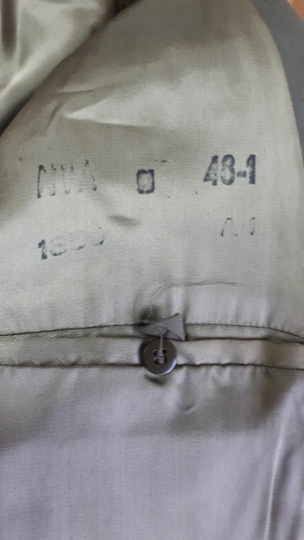 Original DDR MfS Uniformjacke Offizier Oberleutnant K24 * Stempelung NVA g 48-1 1850 A/1 (bis vor 1977) Größe: g 48-1 Es wurde folgendes nochmals von mir ausgemessen: * Brustumfang: ca. 110 cm * Rückenlänge: ca. 73 cm * Ärmellänge: ca. 64 cm Zustand: gut - gebraucht (kleinere Trage- und Gebrauchsspuren können vorkommen)