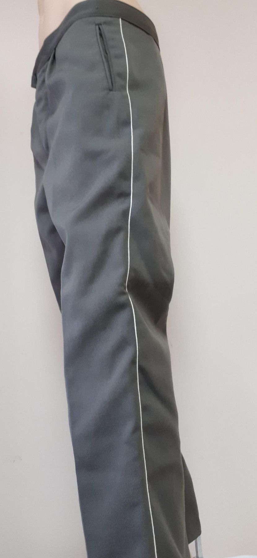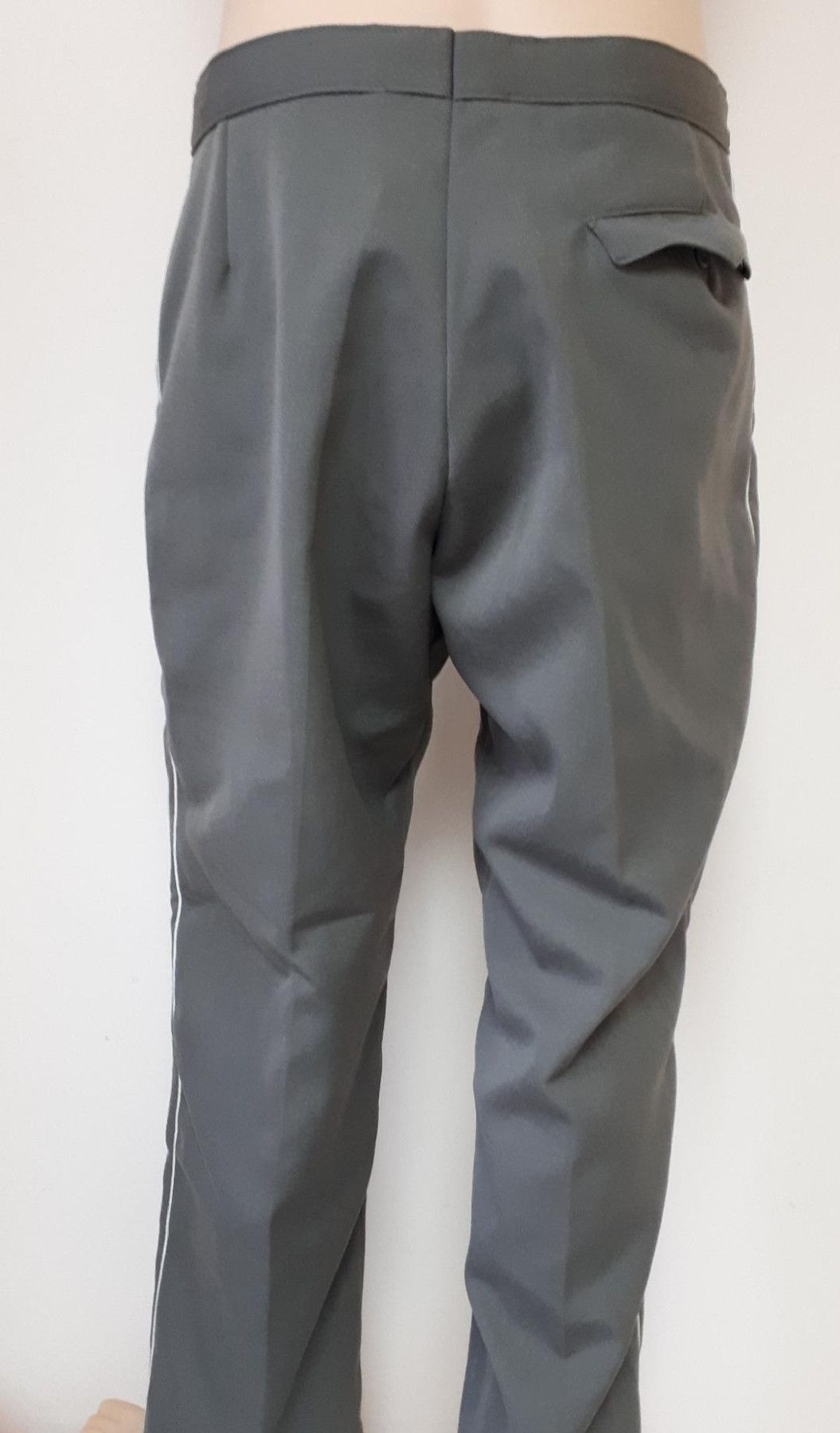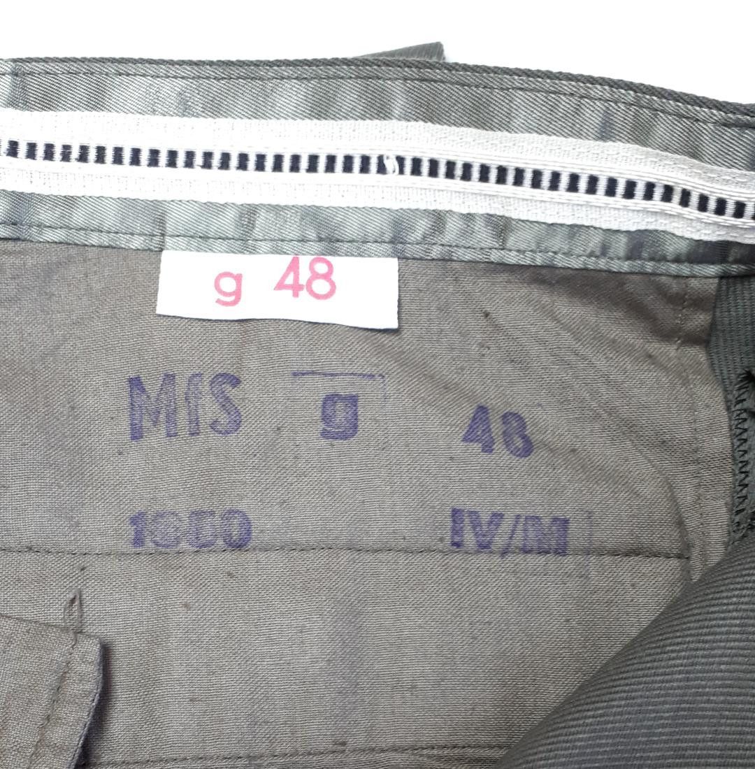 Original DDR NVA Stasi MfS Offiziershose weiße Biese K 40 * mit klarer Stempelung: MfS g48 - 1850 IV/M (4.Quartal 1970) * 1 Gesäßtasche * 2 Seitentaschen * Frontknopfleiste Größe: g 48 = entspricht ca. Konfektionsgröße 48 Zustand: sehr gut - gebraucht Farbe: steingrau Abbildung ist beispielhaft!