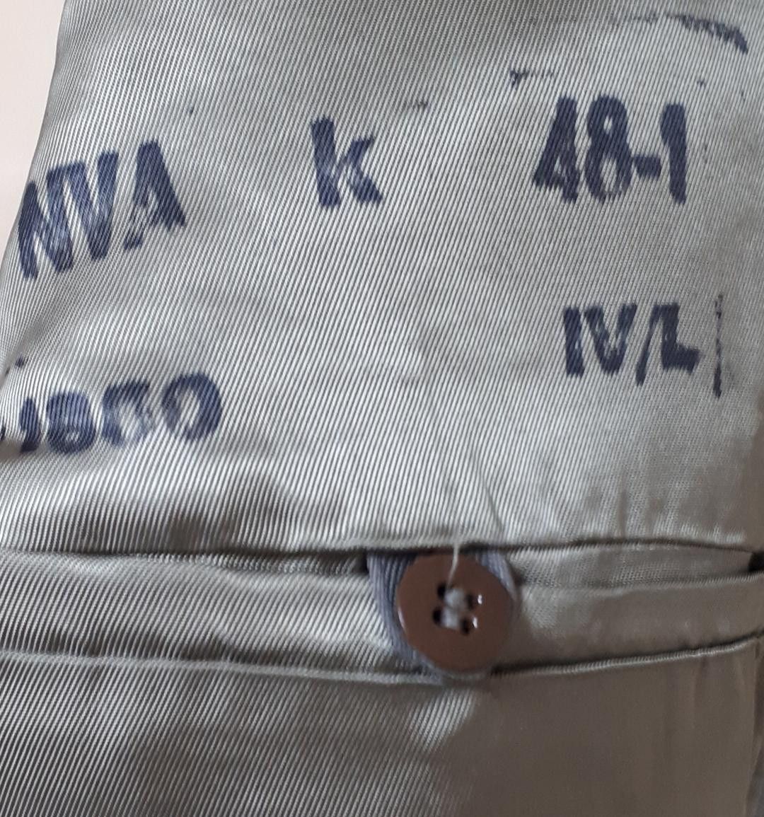 Original DDR NVA Uniformjacke Heer Offiziersschüler K24 * mit Stempelung NVA k-48-1 1850 IV/L Größe: k48-1 * Brustumfang: ca. 108 cm * Rückenlänge: ca. 70 cm * Ärmellänge: ca. 60 cm Zustand: gut - gebraucht (kleinere Trage- und Gebrauchsspuren können vorkommen,ferner sind Löcher und Abdrücke von Abzeichen auf der linken Brustseite vorhanden, linke Ärmelnaht rückseitig aufgerissen 1 cm, auf linkem Ärmel rückseitig brauner Fleck)