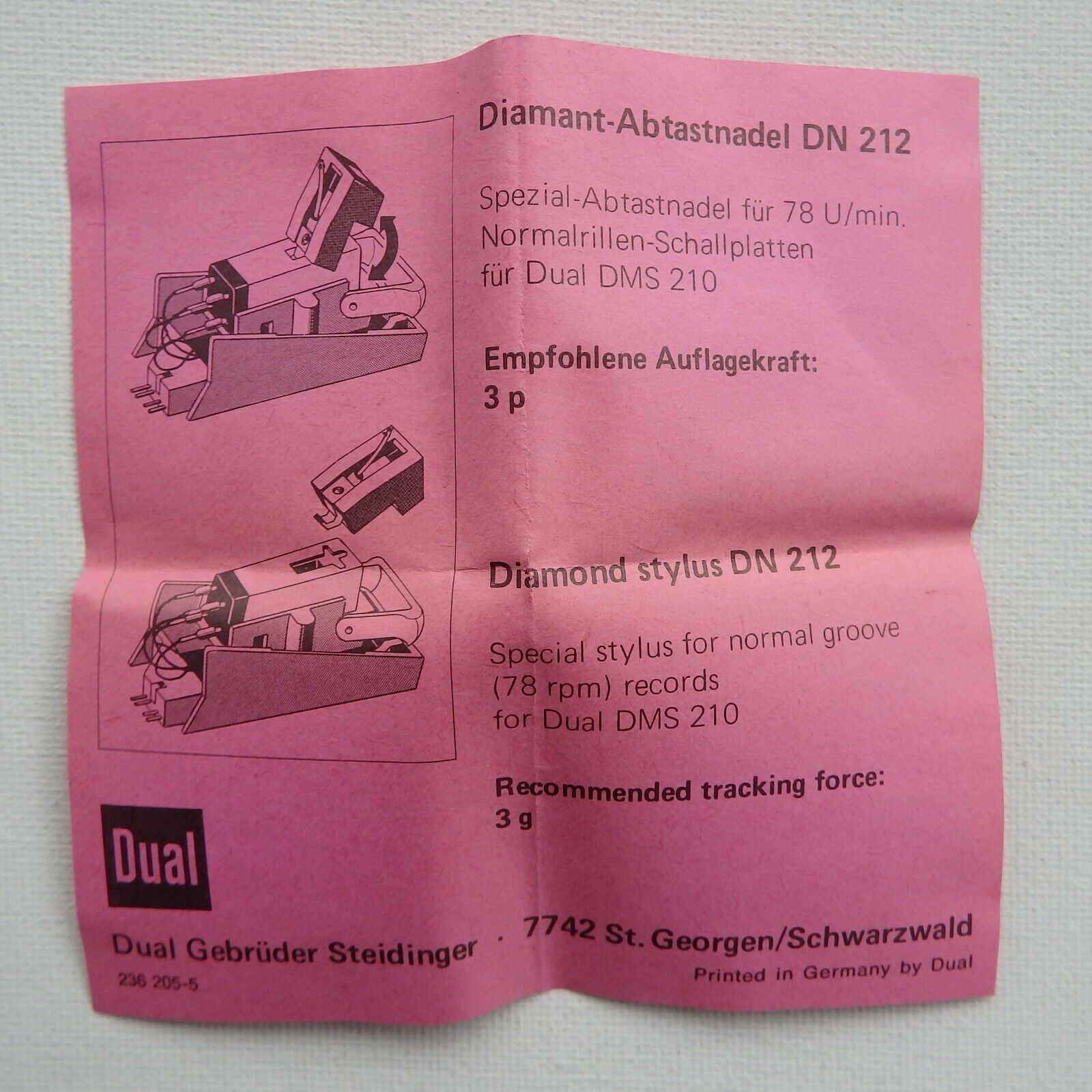 Original Diamant Nadel Dual DN 212 - DMS 210 / 410 / 240 - 78er - NOS Schellack