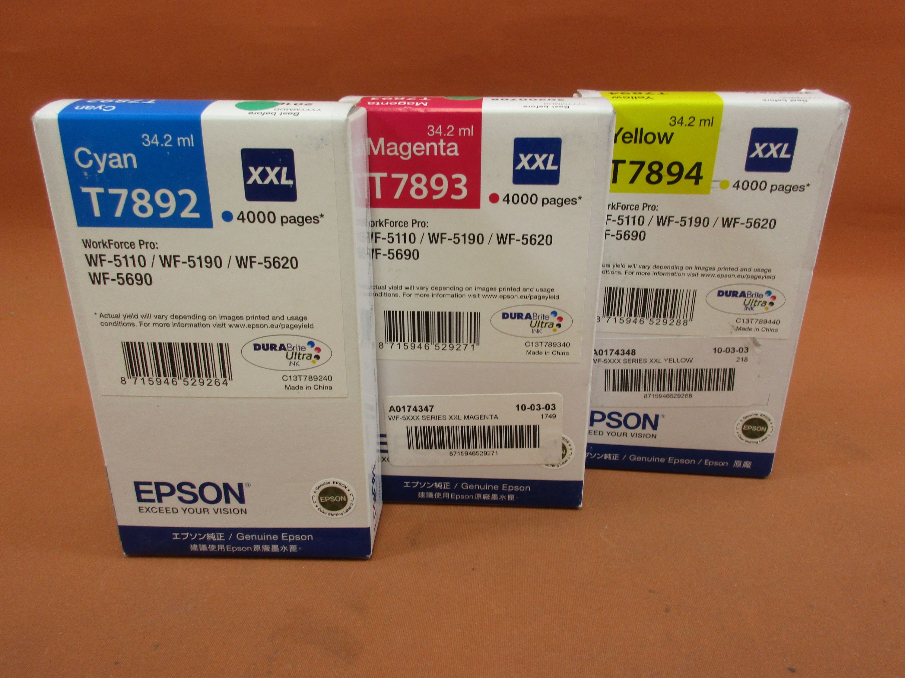 Original Epson T7892 T7893 T7894 OVP Original Epson T7892 T7893 T7894 ink cartridge Die Tintenpatrone ist Original Versiegelt . Unbenutzt und Ungeöffnet. Die Patrone wird im Original Karton geliefert. The ink cartridge is original sealed. Unused and unopened . The cartridge will be delivered in orig