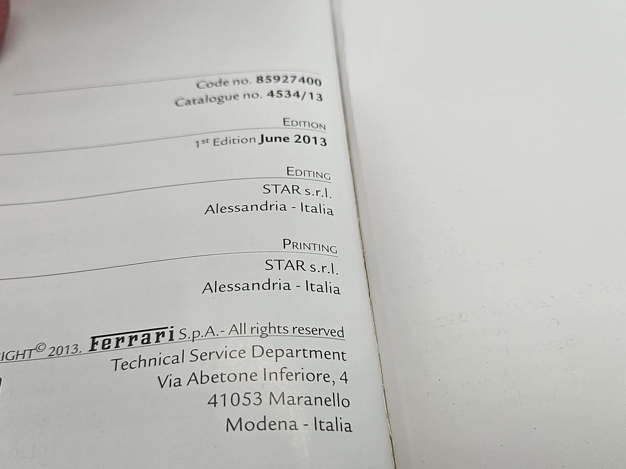 Ferrari Original Ferrari 458 Spider Reference Guide Handbuch englisch Stand 06/2013
