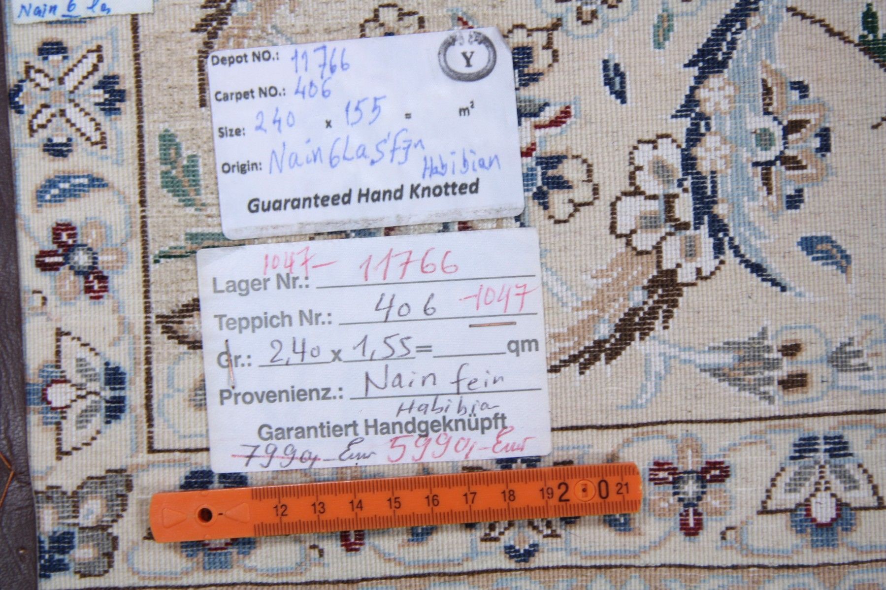 Original handgeknüpfter persischer Nain -Teppich Maß: 2,40x1,55