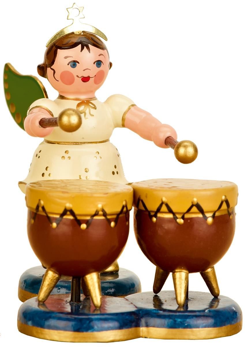 Original Hubrig Volkskunst Engel mit Kesselpauke Erzgebirge