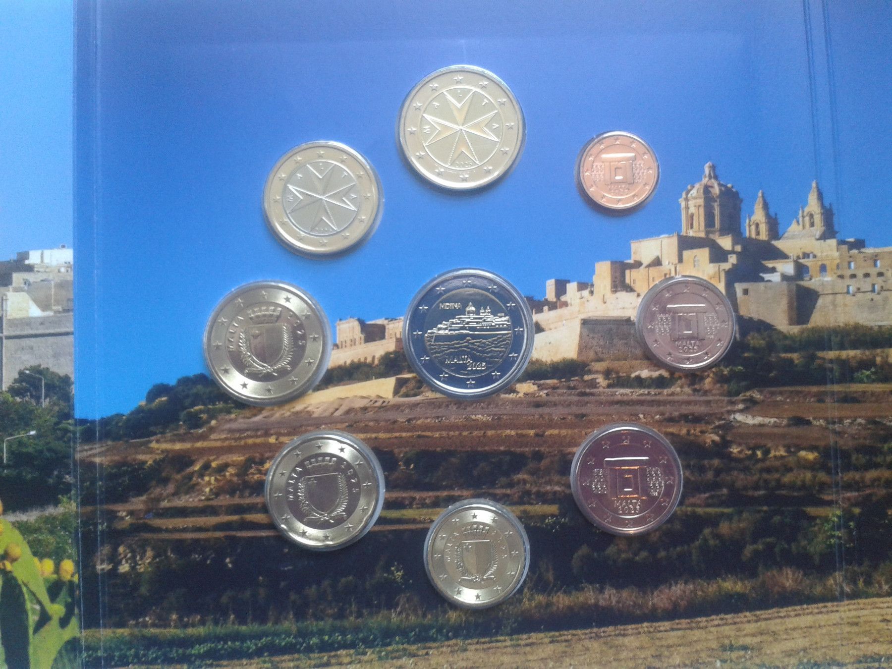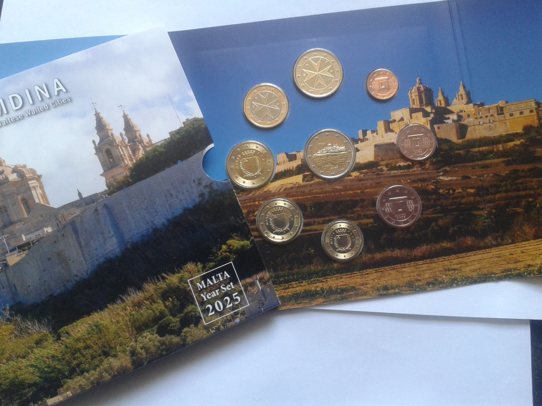 Original KMS 2025 Malta mit 2 euro 2025 Malta Mdina im Folder/ Blster