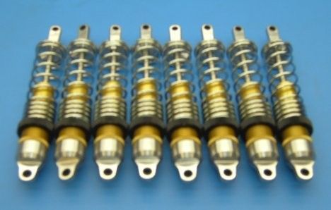 Original Lauterbacher Stoßdämpfer-Set für 1 6er FG Monster-Modelle. Einzigartige Qualität. Lieferumfang 8 Stück lange Stoßdämpfer für Hinterachse (Länge von Auge zu Auge 140 mm). Lieferung komplett montiert direkt vom Hersteller mit Rechnung und Gewährleistung. Made in Germany. Keine billige China-W