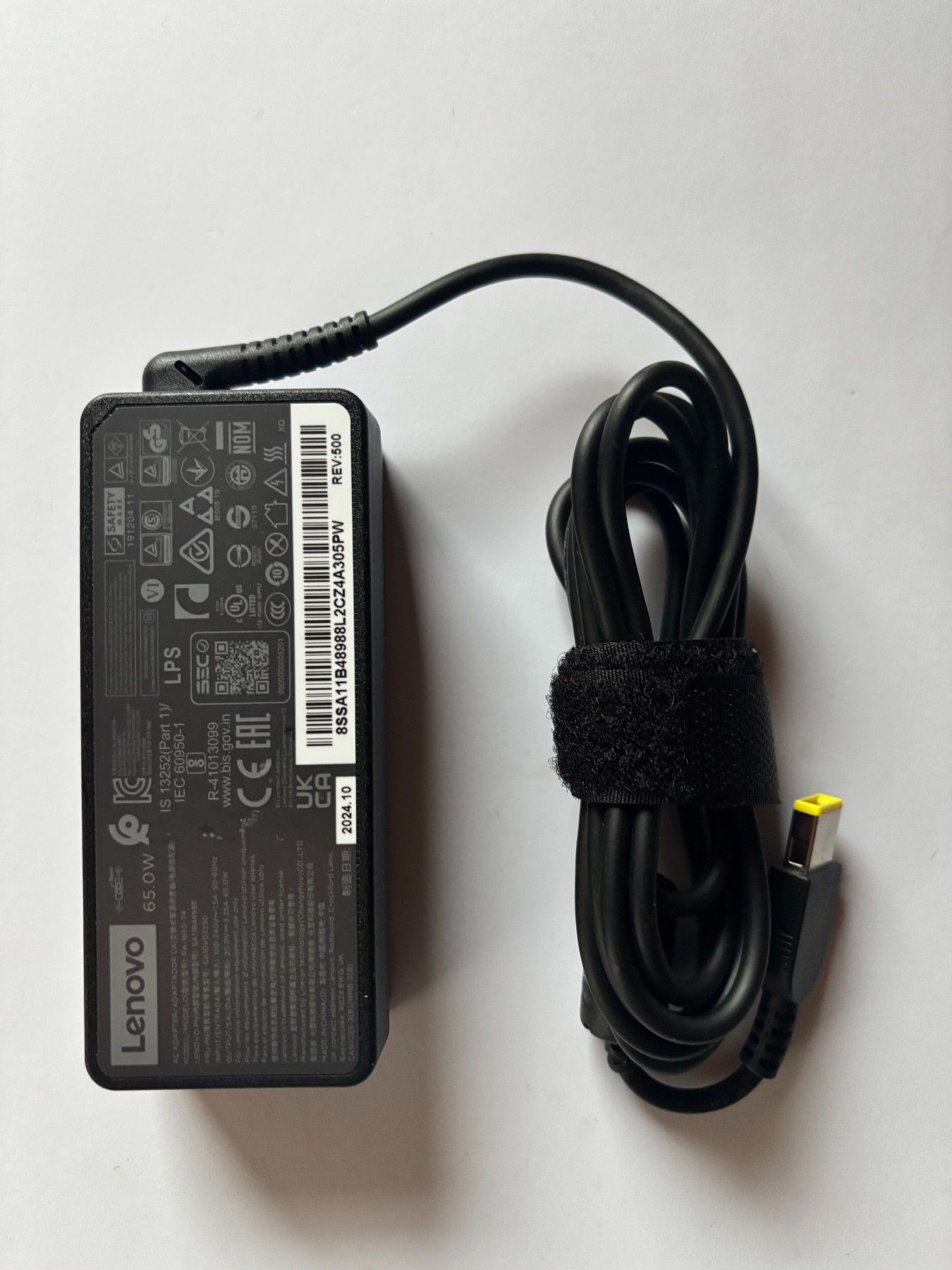 Originales Lenovo 65W Netzteil mit SlimTip-Stecker (gelb, rechteckig). Gereinigtes, geprüftes Gebrauchtgerät für viele Lenovo ThinkPad Modelle.