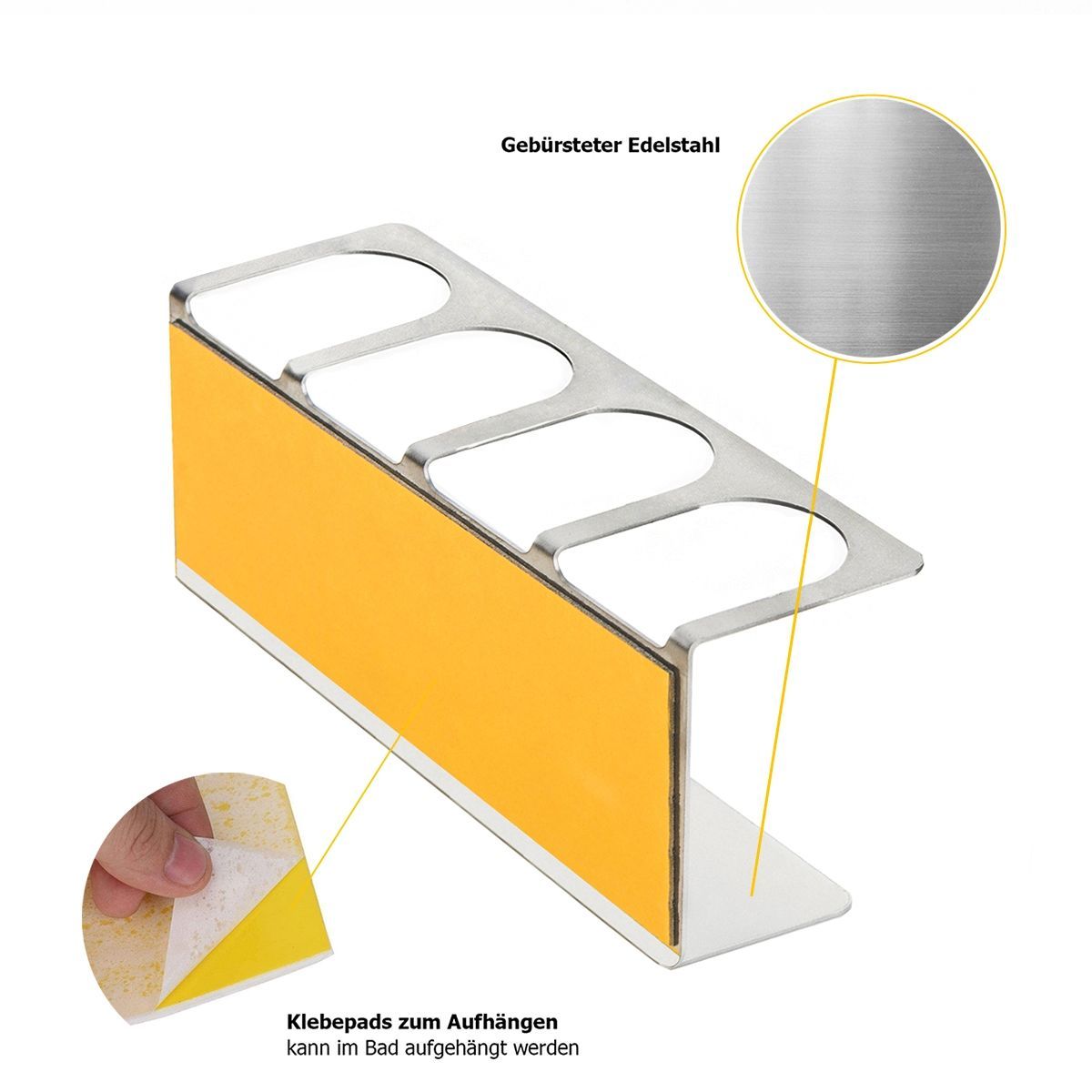 Original LST 4er Wandhalterung Edelstahl selbstklebend elektrische Zahnbürsten