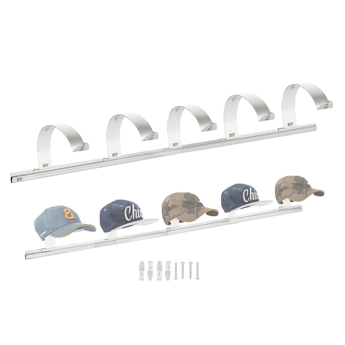 Original LST Edelstahl Klemmleiste mit 5 Cap-Halter für Baseballcaps Mützen