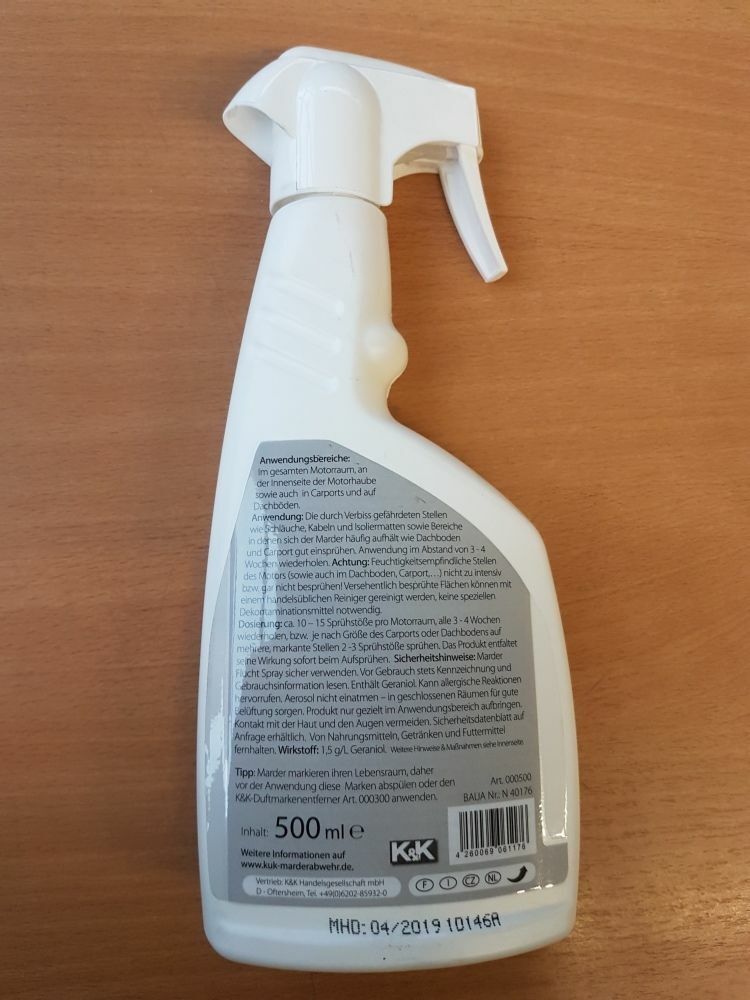 Original Marderabwehr Spray Marder K&K 500ml Flasche Schutz VW Zubehör 000054780