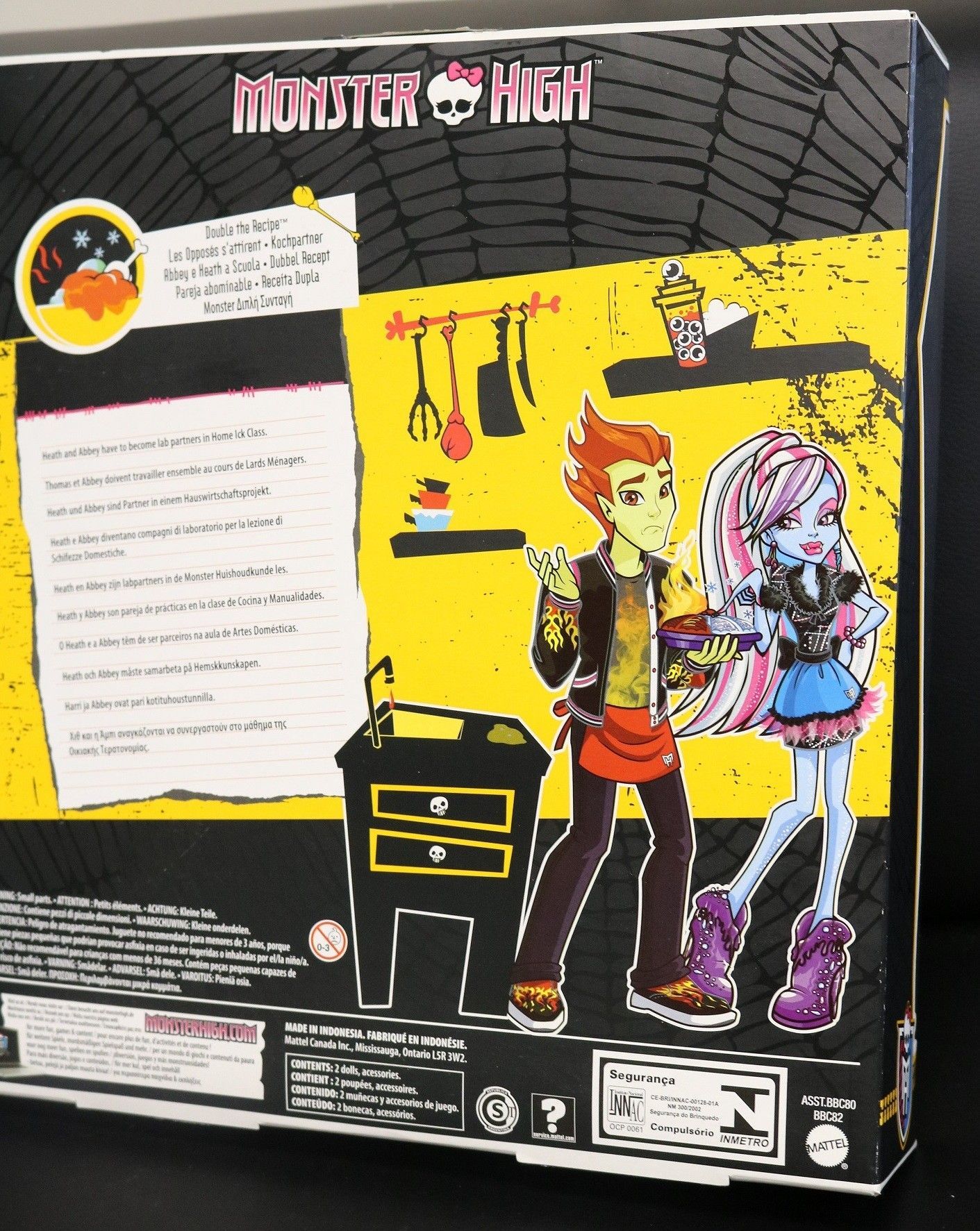 Trendy – cool – einfach Kult! ..................... und sehr selten! Das ideale Geschenk! Monster High™ 2 Sammlerpuppen - Heath Burns und Abbey Bominable kochen monsterkrass! Seriennummer: BBC82 (2012 - EU) First Generation! Original Mattel Monster High™ Puppen Heath Burns und Abbey Bominable sind Partner beim Kochprojekt Artikel in Originalverpackung!
