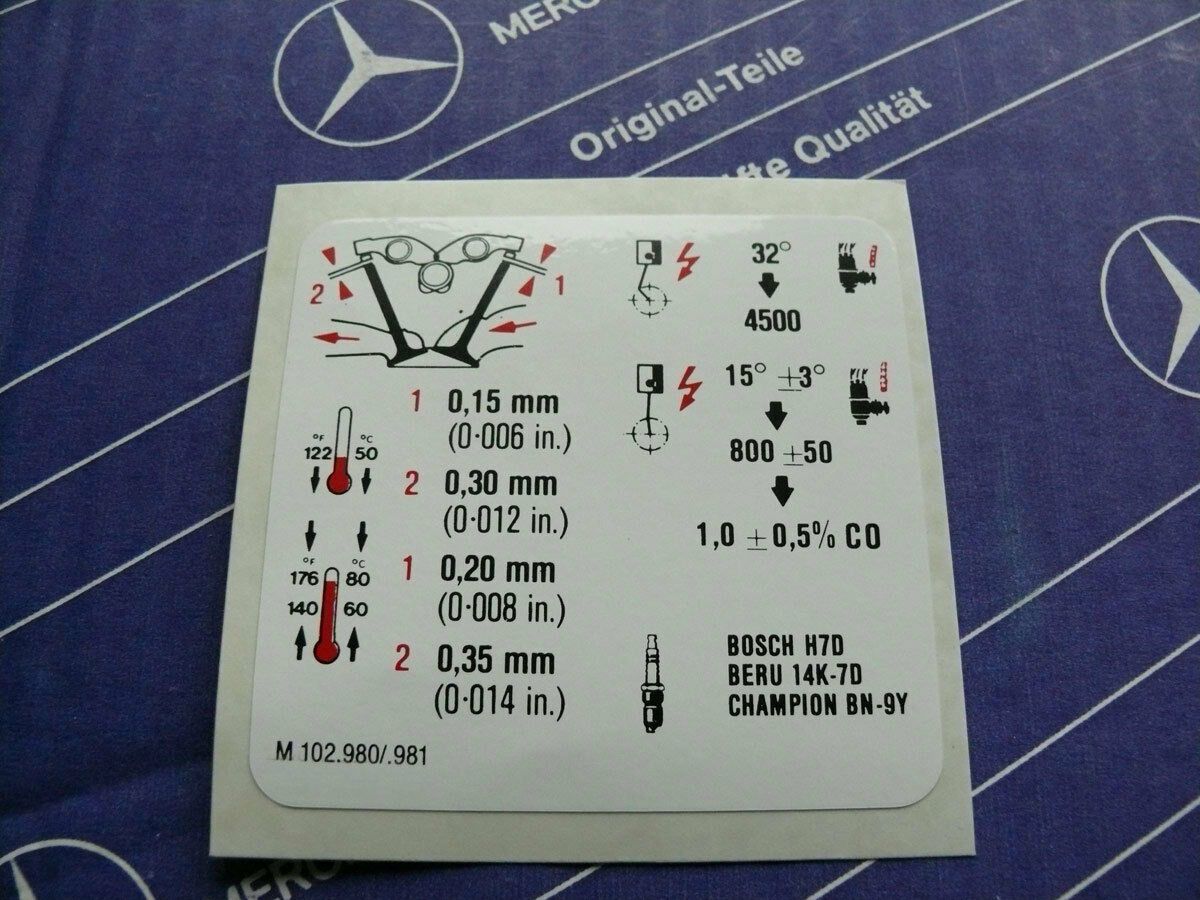 Mercedes Benz Mercedes Motor-Aufkleber Motor M102.980/981 im W123 W460 230E und 230GE
