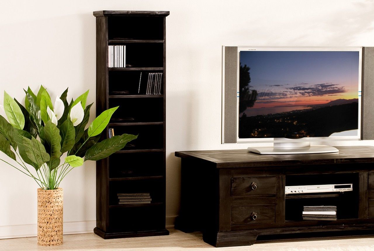 Original Mexico Kolonialstil CD-Regal, Ständer, Pinie massivholz, schwarz-braun lacki