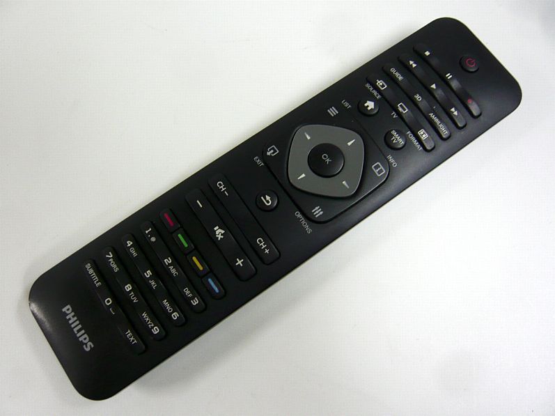 gebraucht, geprüft, funktionstüchtig geringe Gebrauchsspuren Original Fernbedienung von Philips, Typ: TVR51312 12 Bezeichnung: YKF315-Z01 Original Ersatzteilnummer: 242254990521 auf der Rückseite befinden sich noch 38 Tasten anlernbar mit den Tasten rot und blau passend für folgende Geräte: 47PFL668