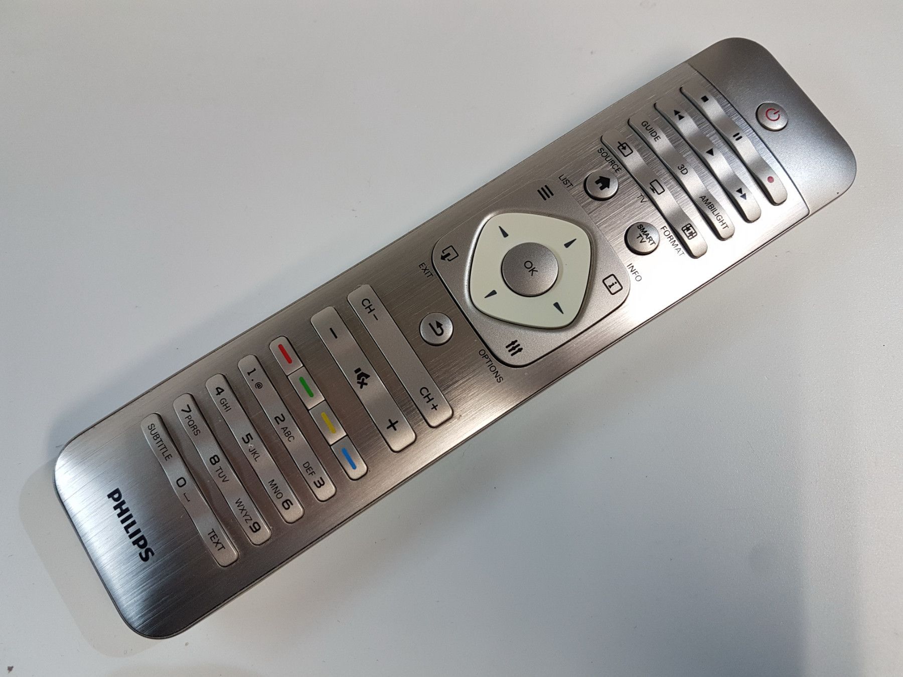 gebraucht, geprüft, funktionstüchtig geringste Gebrauchsspuren Original Fernbedienung von Philips, Typ: TVR62312 12 Bezeichnung: YKF316-002 Original Ersatzteilnummer: 242254990523 Farbe Front: Silbermetallic Rückseite: weiß anlernbar mit den Tasten rot und blau auf der Rückseite befinden sich noch 3