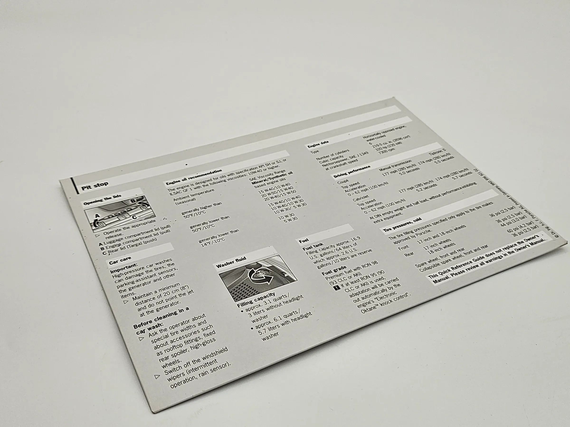 Original Porsche 911 Carrera 2/4 Typ 996 Schnell Betriebsanleitung english