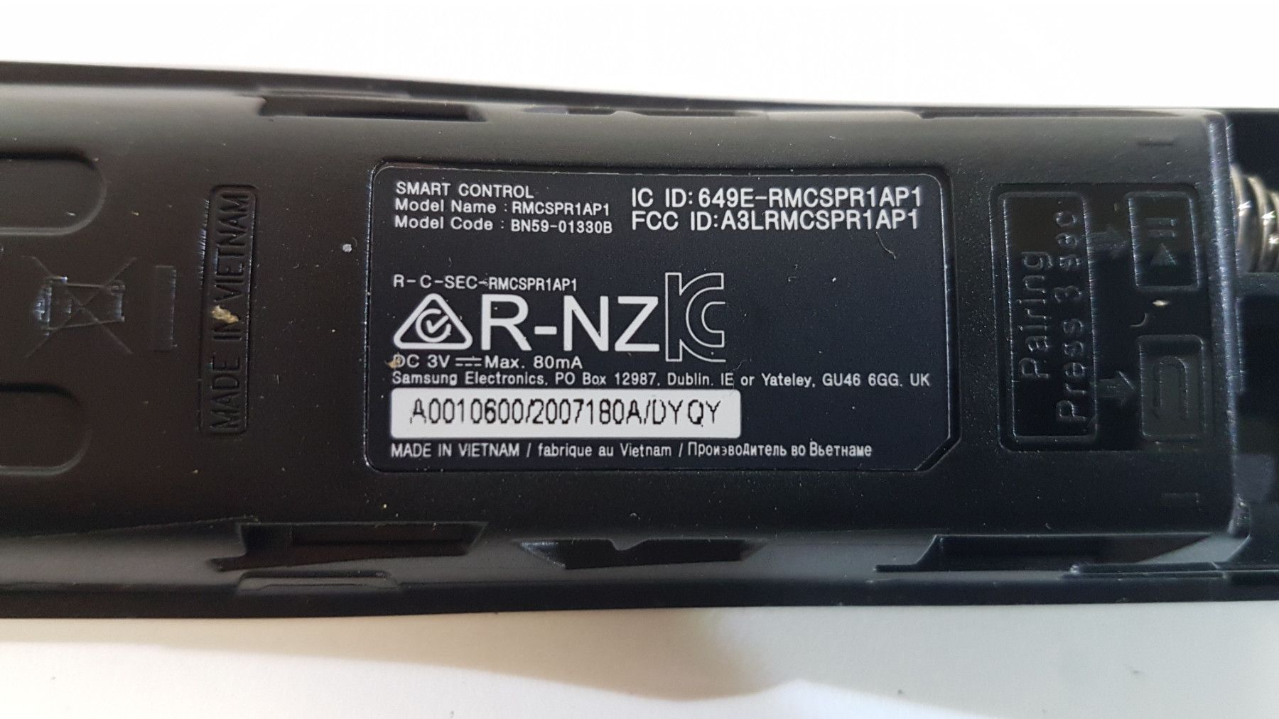 gebraucht, geprüft, funktionstüchtig, original Fernbedienung von Samsung, Smart Control Bezeichnung: RMCSPR1AP1 Bestellnummer: BN59-01330B Farbe: schwarz mit Tasten für: Netflix, prime Video, Rakuten TV mit Pairing Funktion Anleitung unter dem Batteriedckel B51
