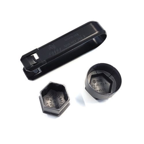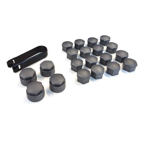 Original Skoda Abdeckkappen für Sicherheits-Radschrauben, grau matt, mit Abziehhaken