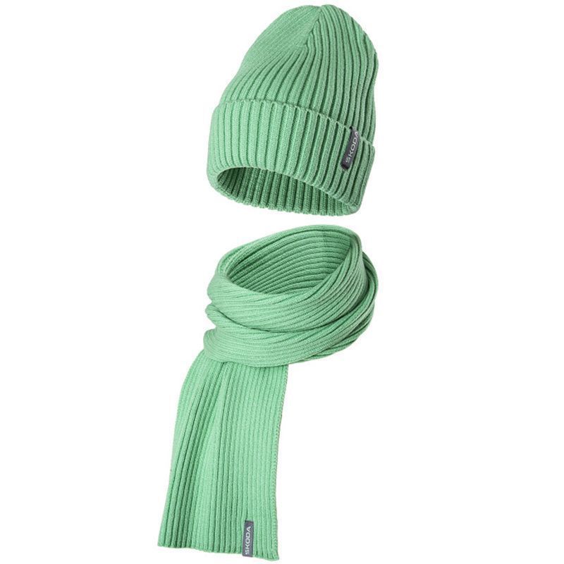 Original Skoda Mütze Schal Winter Strickmütze Strickschal grün 000084303N622