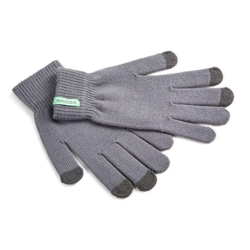 Skoda Strickhandschuhe mit Touchscreen-Fingerspitzen für Herren, grau