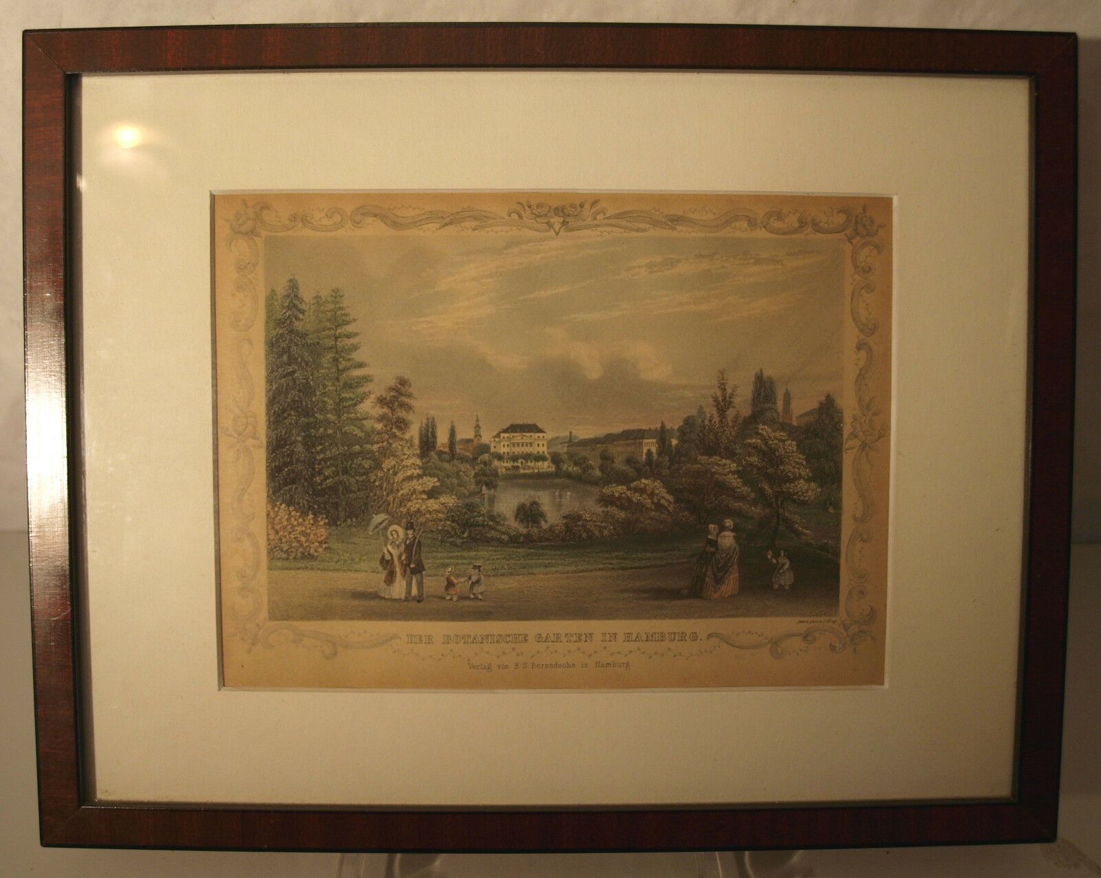 Original-Stich von 1852. Gez. und gest. James Gray. Motiv: Der Botanische Garten in Hamburg . Gekauft bei Hamburgensien-Meyer, Hamburg . Maße: Rahmen H 23, B 29 cm. Antikes am Deich - Inh: Oliver Kipp-Trense G M T Sprache erkennen Afrikaans Albanisch Arabisch Armenisch Aserbaidschanisch Baskisch Ben