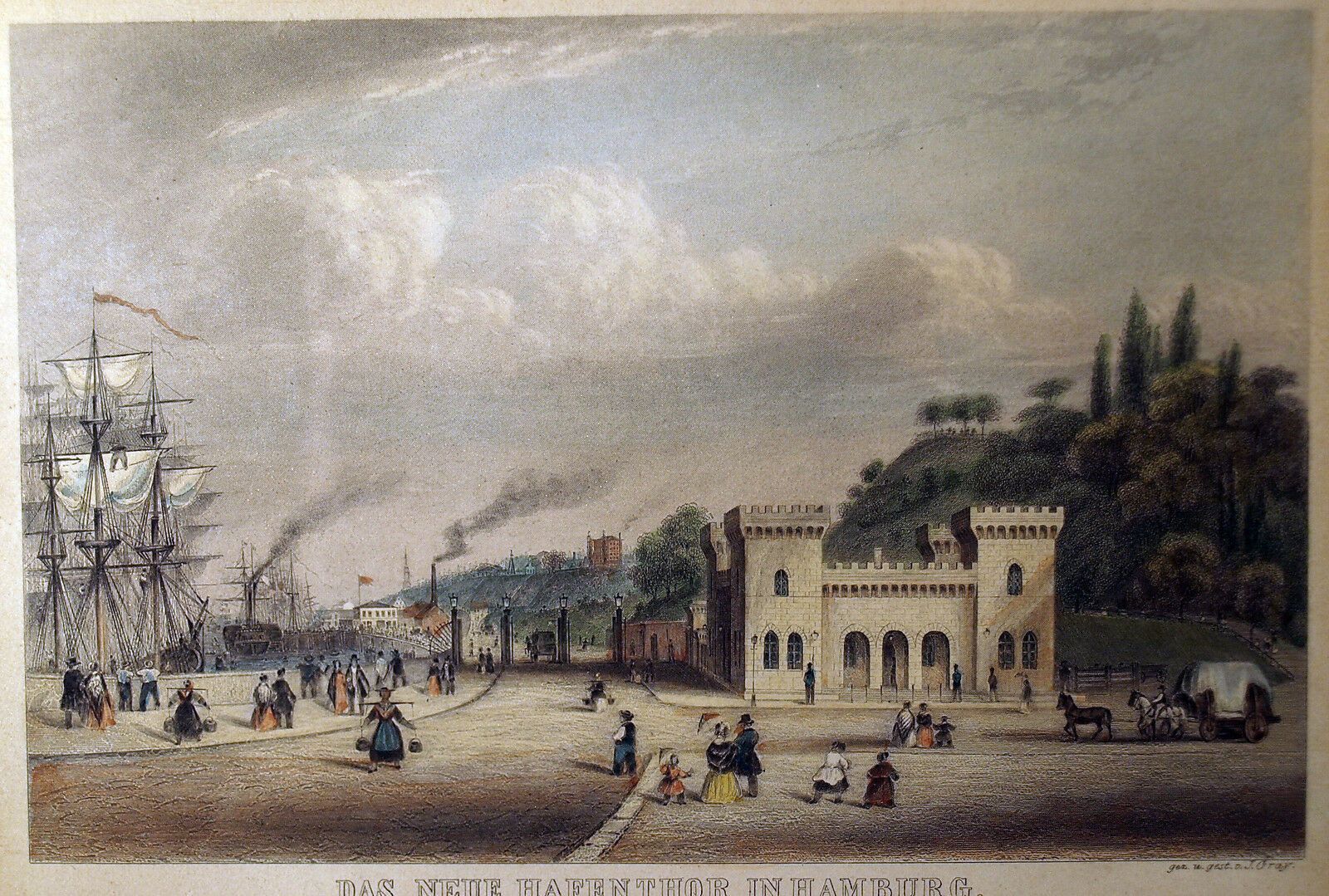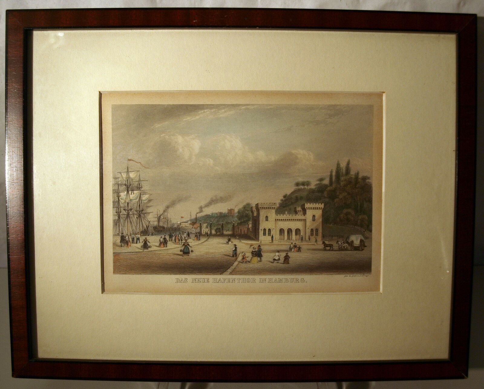 Original-Stich von 1852. Gez. und gest. James Gray. Motiv: Das neue Hafenthor in Hamburg . Gekauft bei Hamburgensien-Meyer, Hamburg . Maße: Rahmen H 23, B 29 cm. Antikes am Deich - Inh: Oliver Kipp-Trense G M T Sprache erkennen Afrikaans Albanisch Arabisch Armenisch Aserbaidschanisch Baskisch Bengal