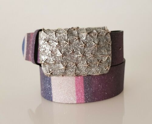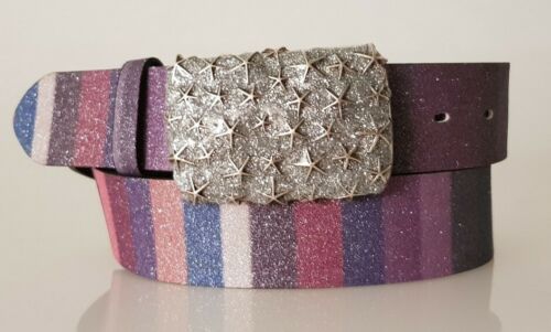 Original Umjubelt Gürtel "Spirit metallic bunt" Glitzer Leder Größe 80