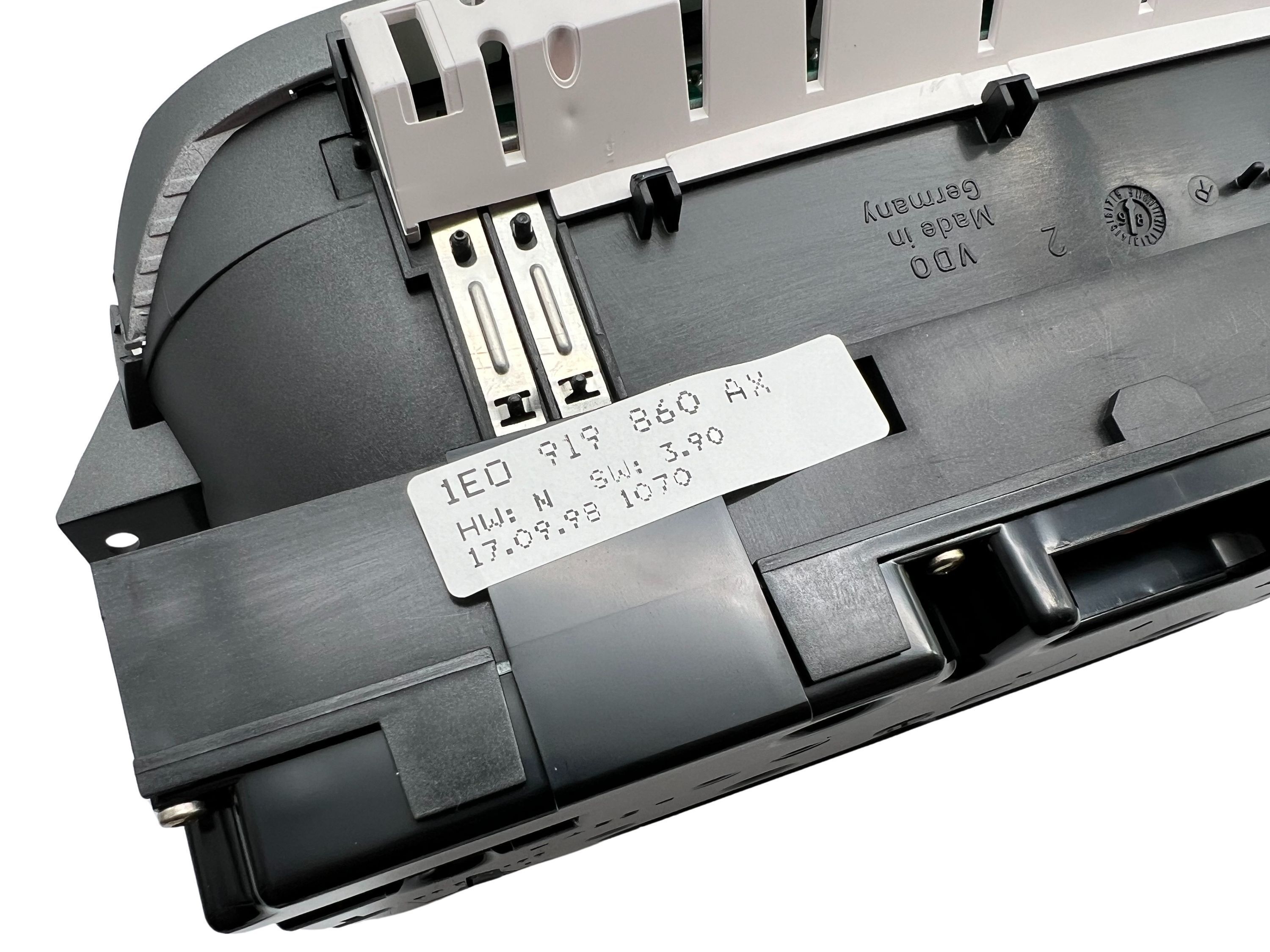 Original VW Golf 4 IV Cabrio Tacho Kombiinstrument – Multifunktionsanzeige für 1,6L Benziner ---- Teilenummer: 1E0919860 AX ---- Original Volkswagen Autozubehör® Original Volkswagen Autozubehör – Kombiinstrument für Ihren Golf 4 Cabrio ---- Sichern Sie sich das Original VW Kombiinstrument für Ihr Golf 4 Cabrio 1,6L Benziner ! Dieses hochwertige Multifunktionsanzeige-Display wurde speziell für die Baureihe 1E entwickelt und sorgt für eine präzise Anzeige aller wichtigen Fahrz