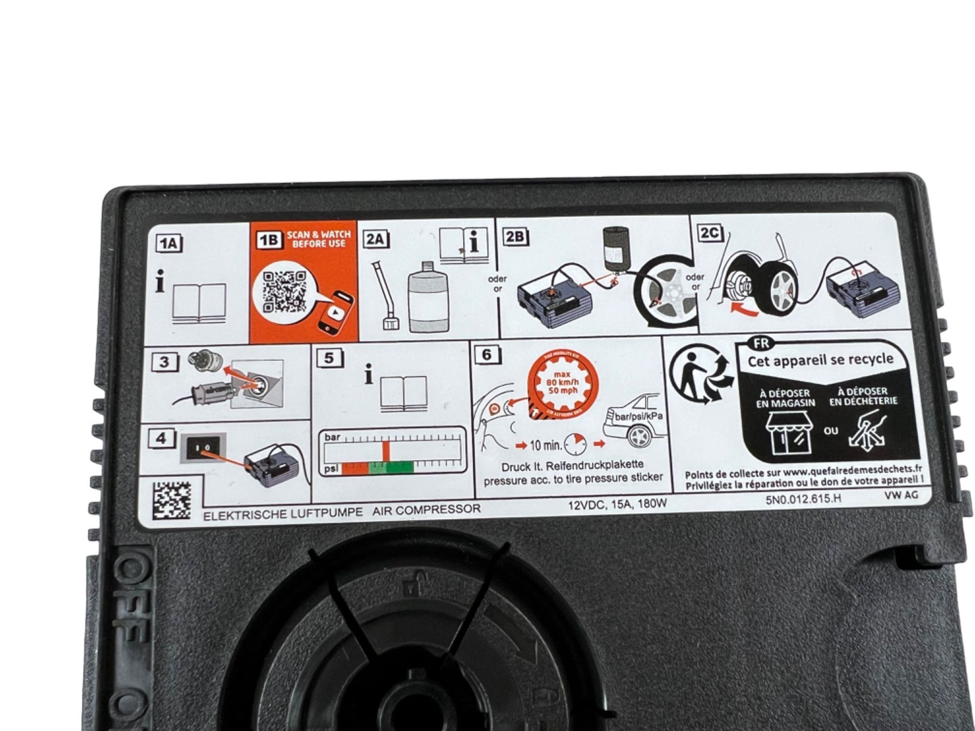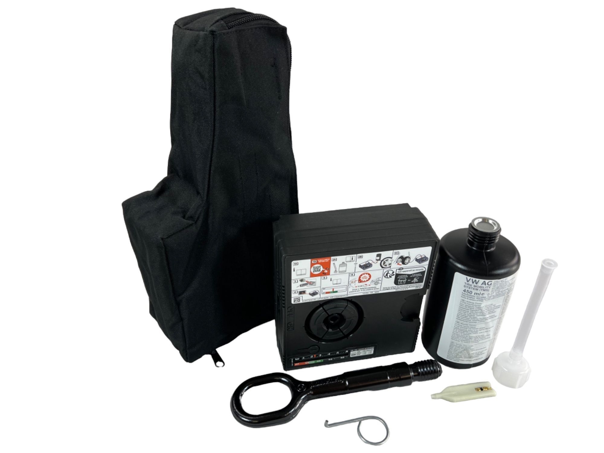 Original VW TMS Kompressor Dichtmilch Reifen Pannenset Audi Werkzeug MHD 2029 OE