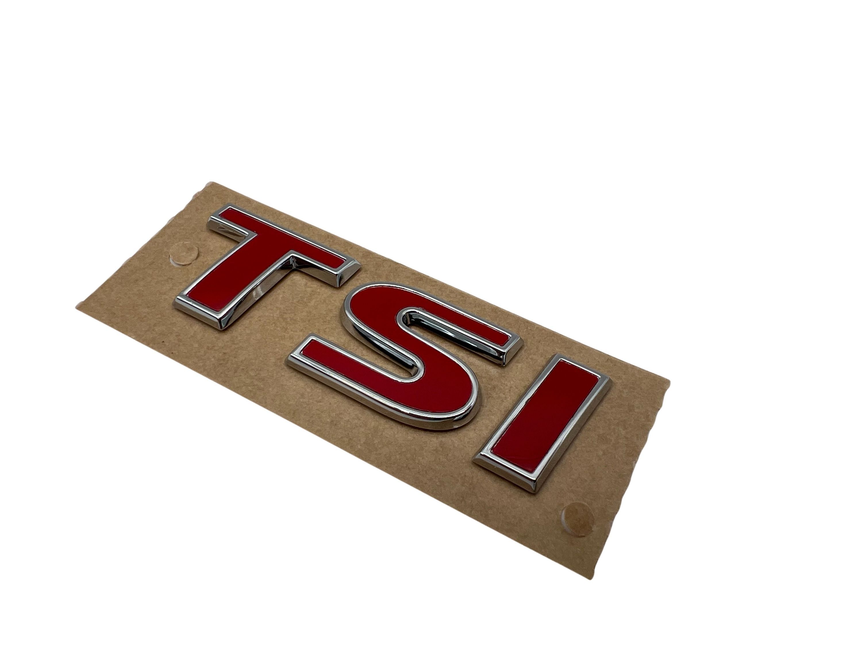 Volkswagen Original VW TSI Schriftzug Rot Chrom Logo Emblem selbstklebend Heckklappe Tiguan