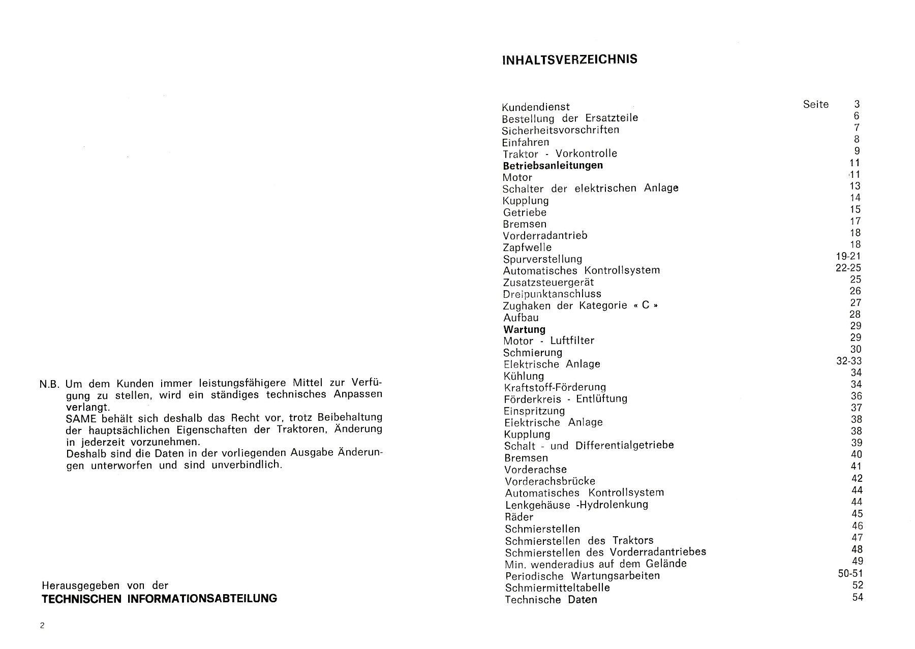 Originale Anweisung für Bedienung und Wartung Same Cosaro 70 synchro
