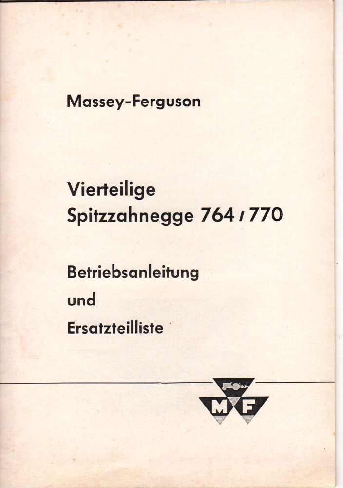 Originale Betriebsanleitung Massey Ferguson Vierteilige Spitzzahnegge 764 - 770