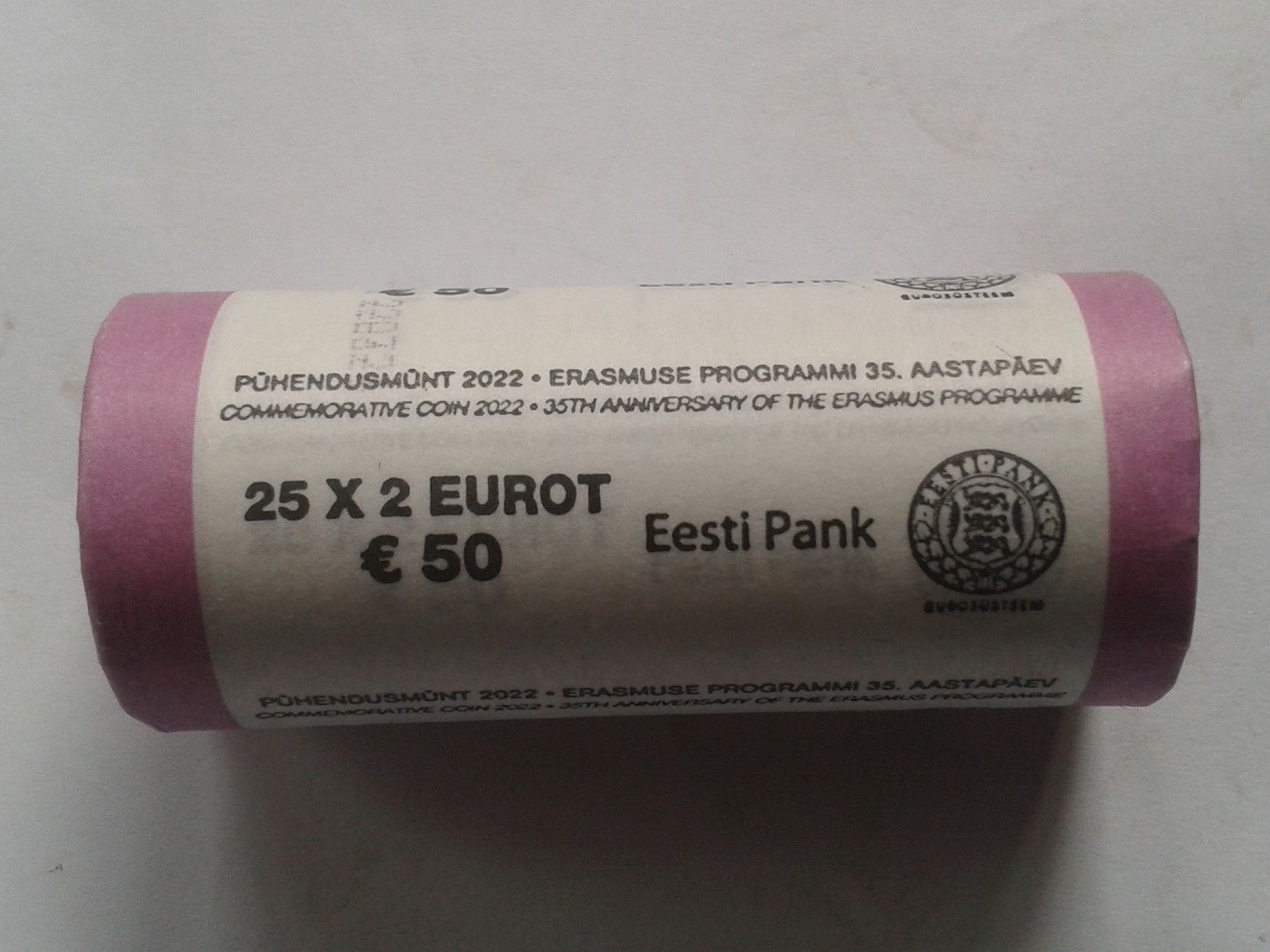 Originalrolle 25 x 2 euro 2022 Estland Erasmus Doppel Sichtrolle 2022 Erasmus