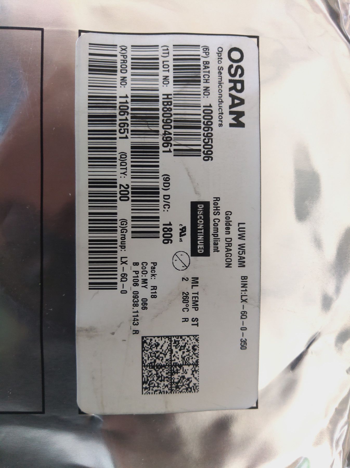 Osram Orignalrolle 200 Stück Osram LED Golden Dragon plus 6500 K kaltweiß LUW W5AM