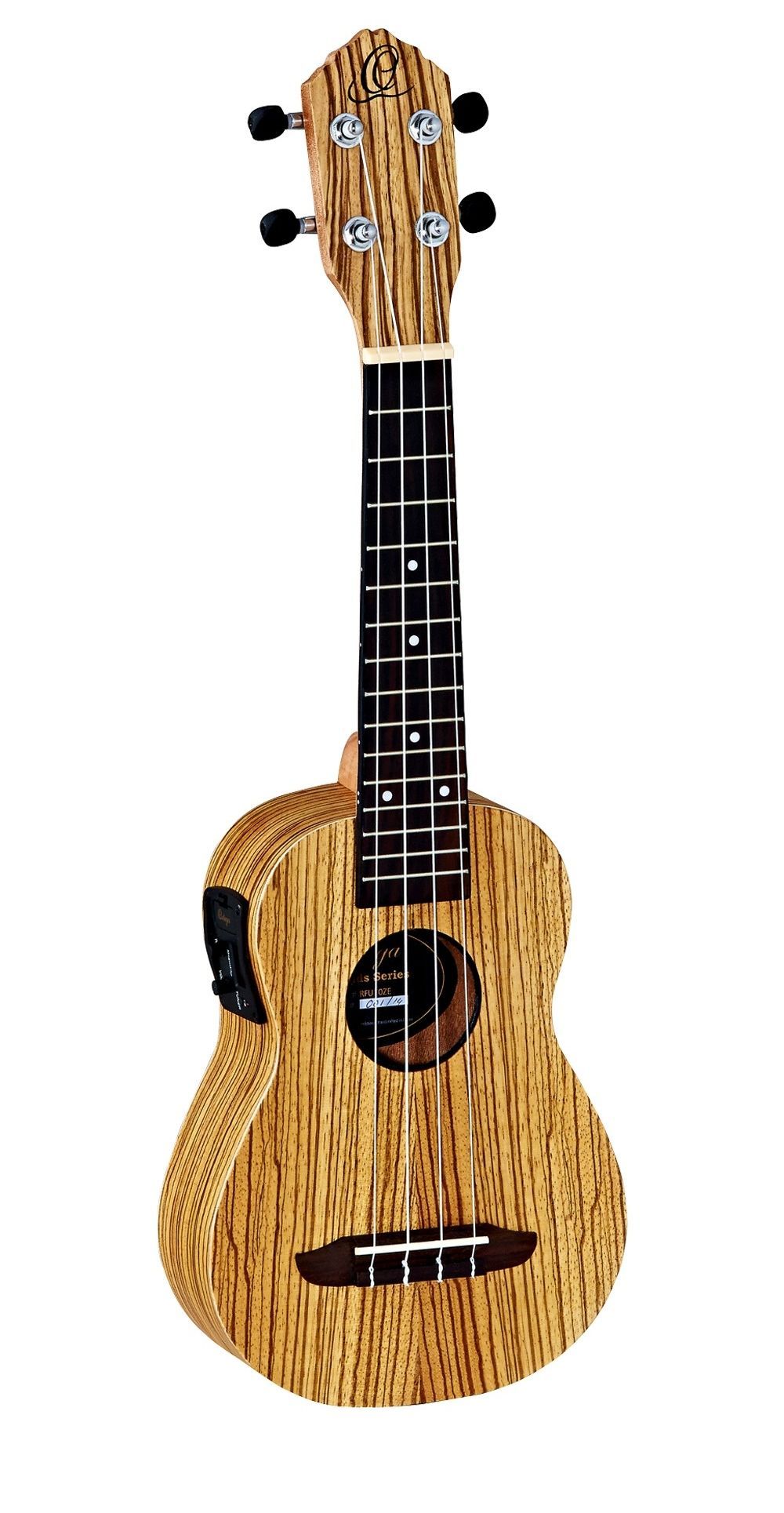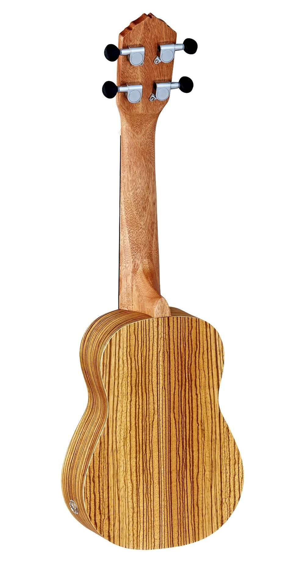 Ortega RFU-11 ZE Sopran Ukulele Korpus: Zebrawood Hals: Mahagoni Griffbrett Steg: Walnuss Mensur: 35 cm ( 13,8' ) Sattelbreite: 34 mm Finish: Satin matt Alle Modelle mit neuem Ortega-Steg zum Durchfädeln, kein 'Verknoten' mehr nötig. Alle Sopran-Modelle haben 16 Bünde anstelle der üblichen 12 Aquila