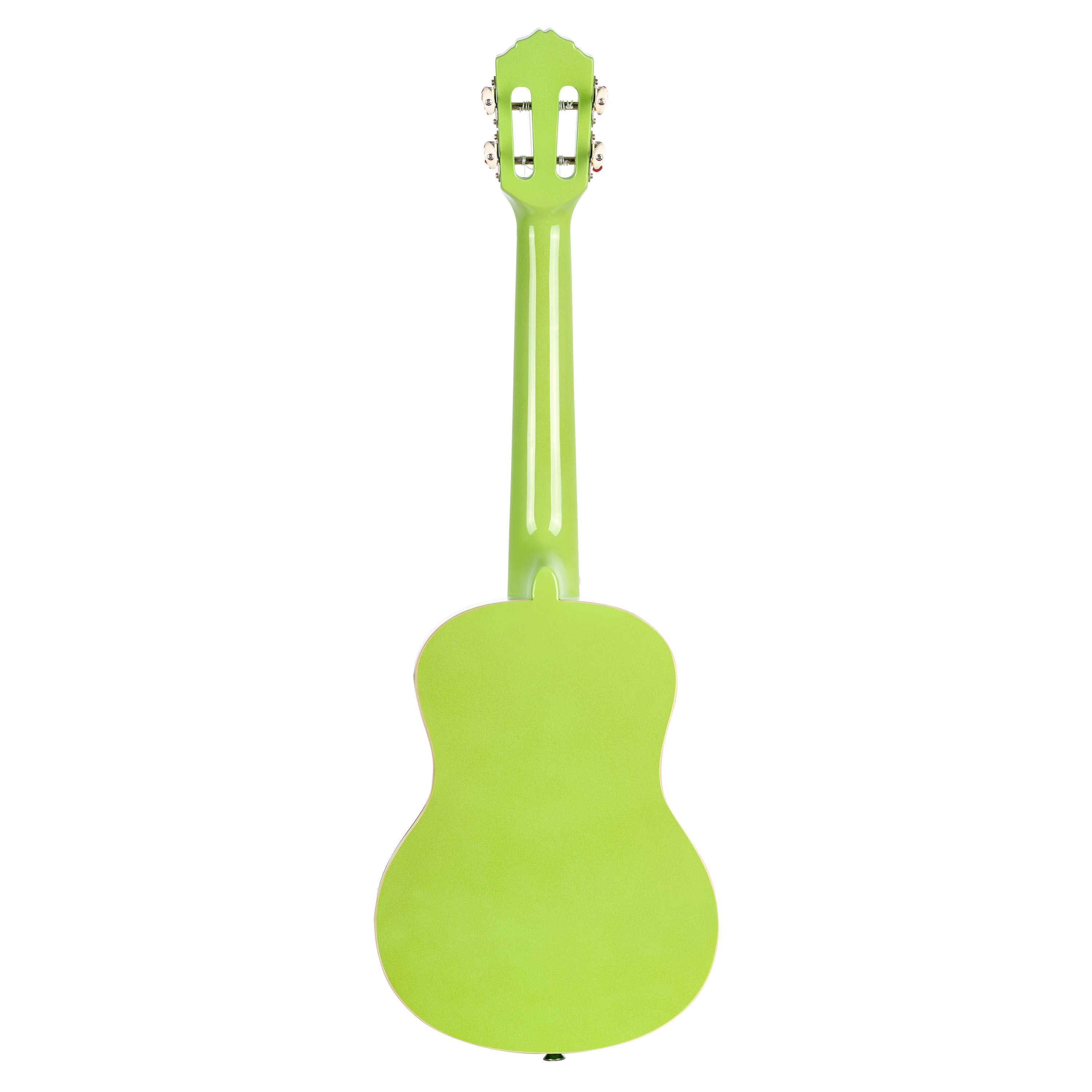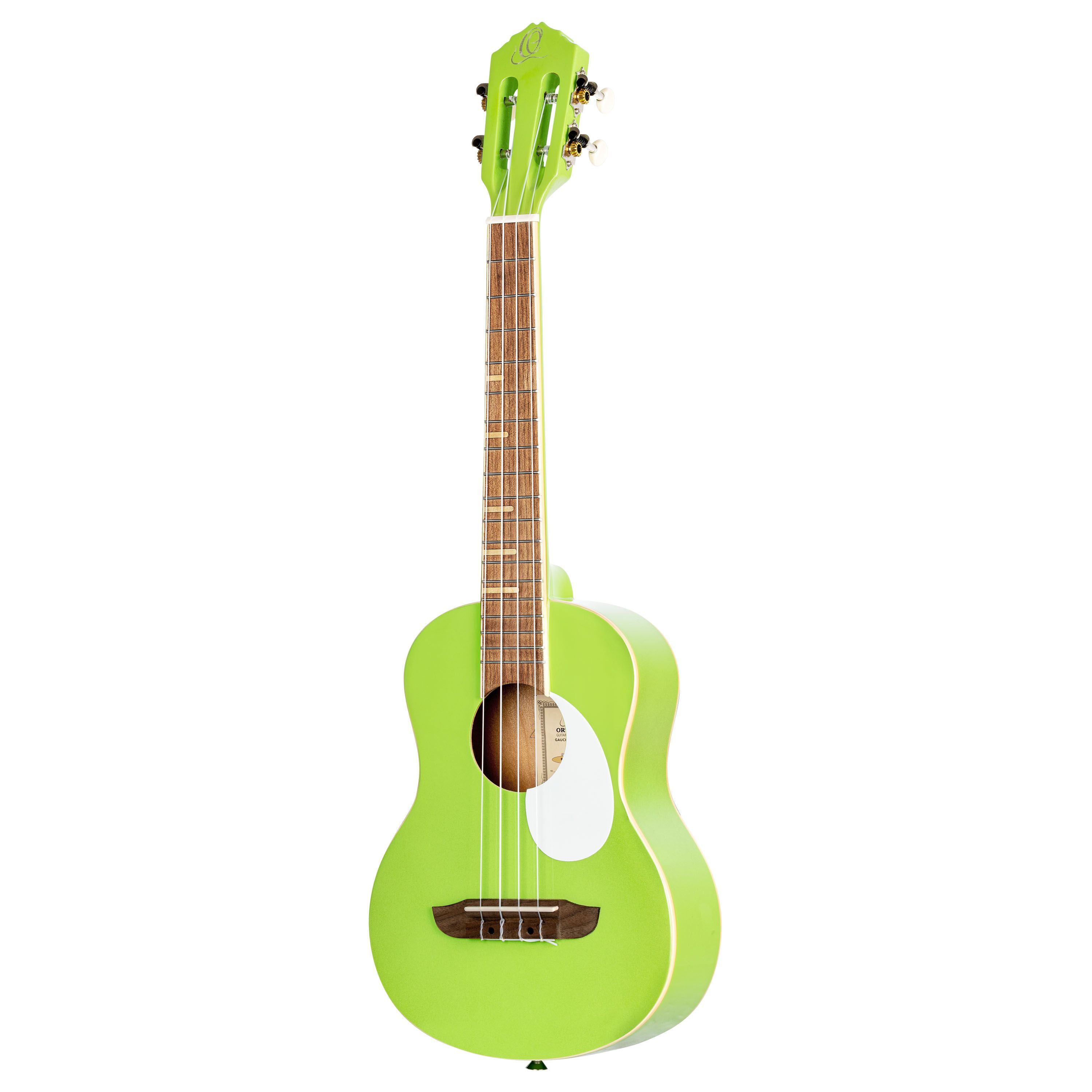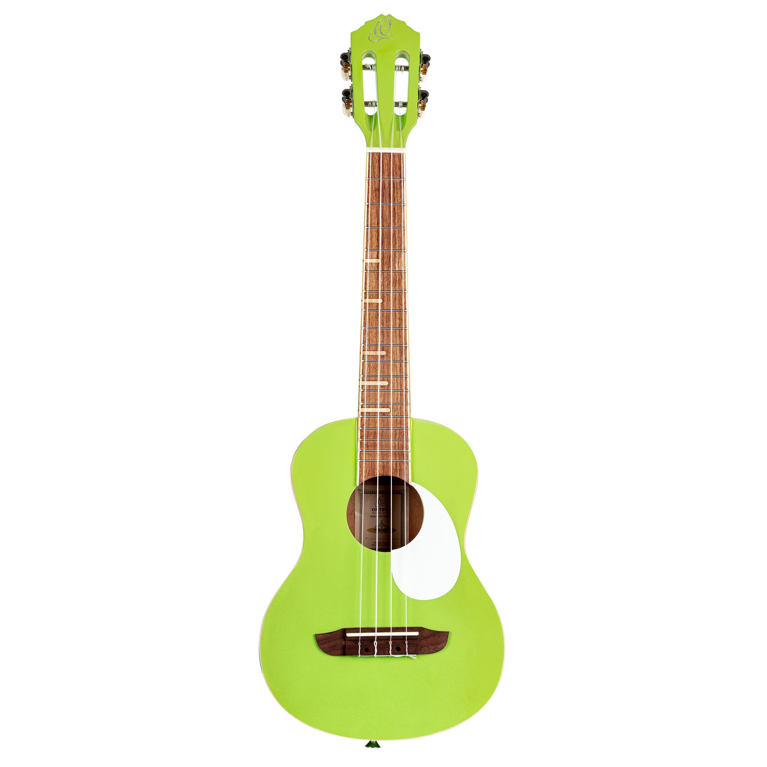 Ortega RUGA-GAP - Tenor Ukulele Green Apple - Gaucho Serie Tenor Ukulele Decke: Agathis Boden und Zargen: Agathis Griffbrett: Walnuss Mensur: 43,2 cm Sattelbreite: 37 mm Ivory ABS Binding Bünde: 18 Pickguard: Teardrop Steg: Walnuss Mechaniken: Chrom mit weißen Flügeln Farbe: Apple Green, Hochglanz I