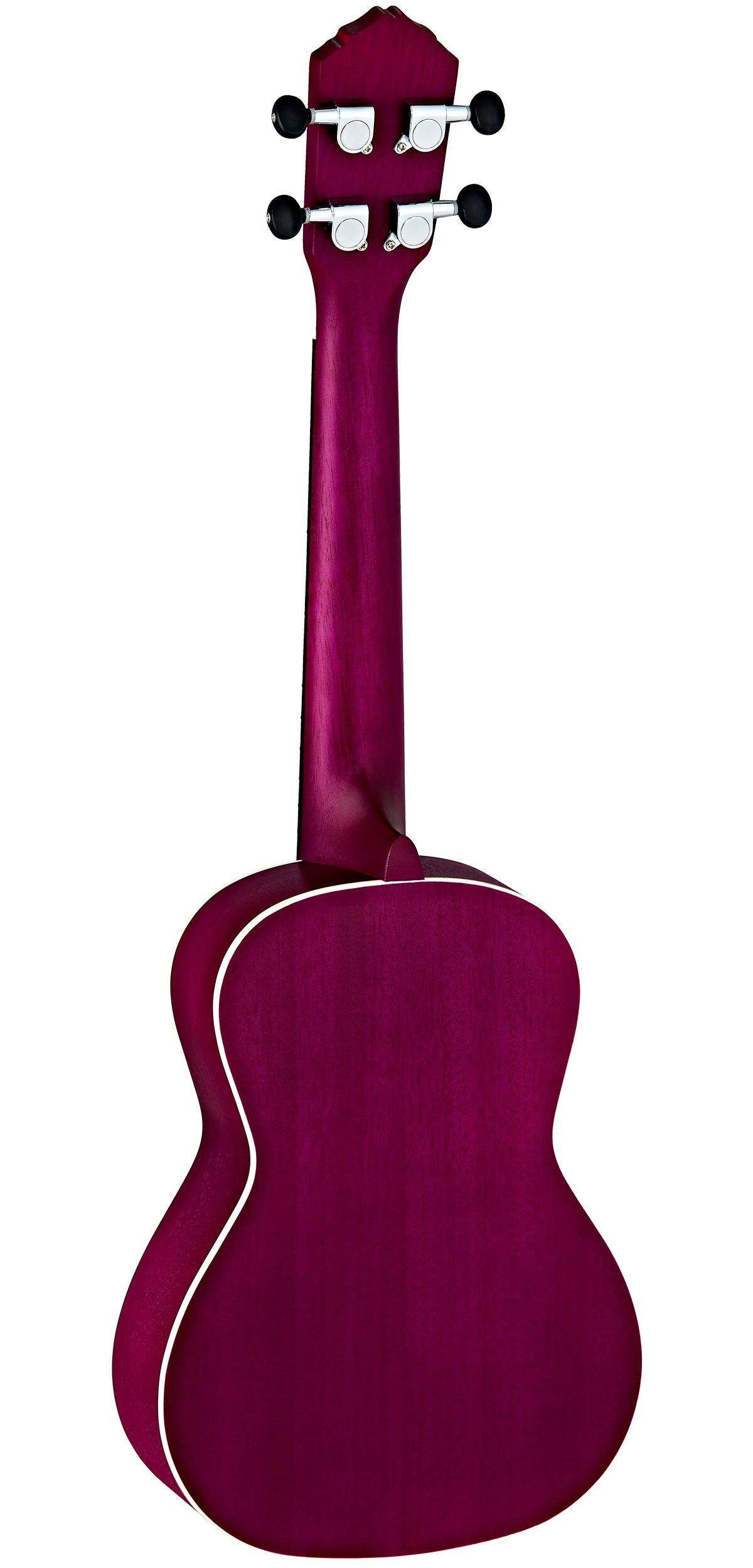 Ortega RURUBY Konzert Ukulele - Transparent Purple Konzert Ukulele Okume Korpus satin Finish Mahagoni Hals satin Halsfinish Walnuss Griffbrett 380 mm Mensur 68 mm Korpustiefe 18 Bünde White ABS Binding Aquila Strings Die-Cast Mechaniken